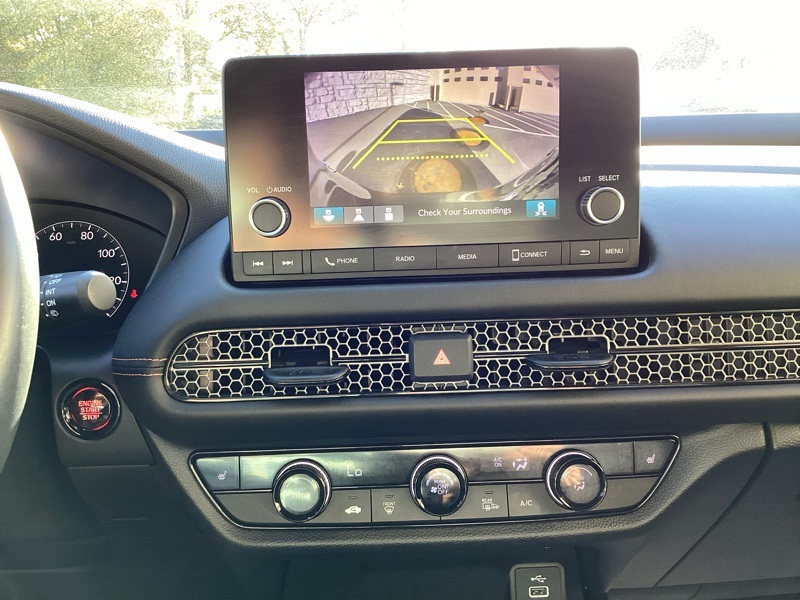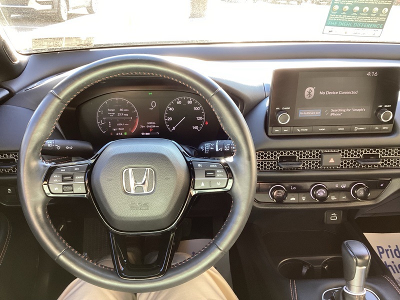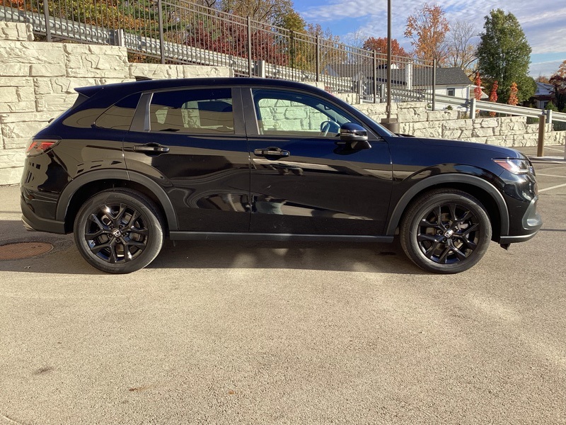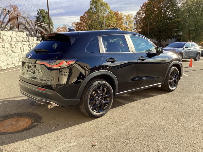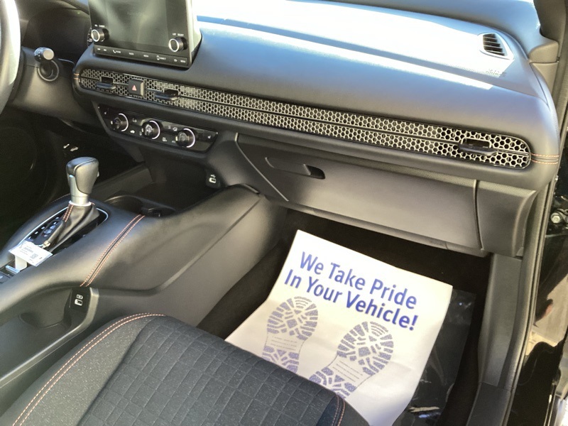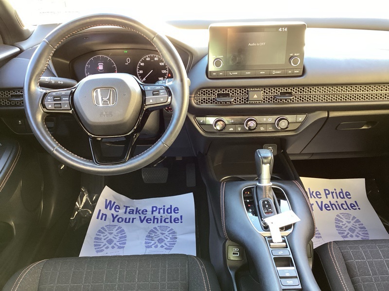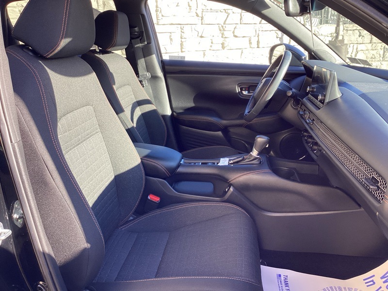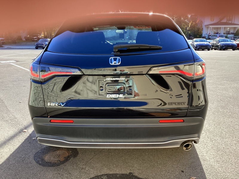 **ONE-OWNER**, **APPLE CAR PLAY**, **ANDROID AUTO**, 4-Wheel Disc Brakes, 5.436 Axle Ratio, 6 Speakers, ABS brakes, Adaptive Cruise Control: Adaptive Cruise Control (ACC) with Low-Speed Follow, Air Conditioning, Alloy wheels, AM/FM radio, Apple CarPlay/Android Auto, Auto High-beam Headlights, Automatic temperature control, Blind Spot Information (BSI) System warning, Brake assist, Bumpers: body-color, Cloth Seat Trim, Delay-off headlights, Driver door bin, Driver vanity mirror, Dual front impact airbags, Dual front side impact airbags, Electronic Stability Control, Emergency communication system: HondaLink, Exterior Parking Camera Rear, Four wheel independent suspension, Front anti-roll bar, Front Bucket Seats, Front Center Armrest, Front reading lights, Fully automatic headlights, Heated door mirrors, Heated Front Bucket Seats, Heated front seats, Illuminated entry, Knee airbag, Leather Shift Knob, Low tire pressure warning, Occupant sensing airbag, Outside temperature display, Overhead airbag, Panic alarm, Passenger door bin, Passenger vanity mirror, Power door mirrors, Power steering, Power windows, Radio data system, Radio: 180-Watt Audio System w/6 Speakers, Rear anti-roll bar, Rear reading lights, Rear side impact airbag, Rear window defroster, Rear window wiper, Remote keyless entry, Security system, Speed control, Speed-sensing steering, Split folding rear seat, Spoiler, Steering wheel mounted audio controls, Tachometer, Telescoping steering wheel, Tilt steering wheel, Traction control, Trip computer, Turn signal indicator mirrors, Variably intermittent wipers, Wheels: 18" Gloss Black Alloy. 2023 Honda HR-V Sport AWD CVT 2.0L I4 DOHC 16V i-VTEC