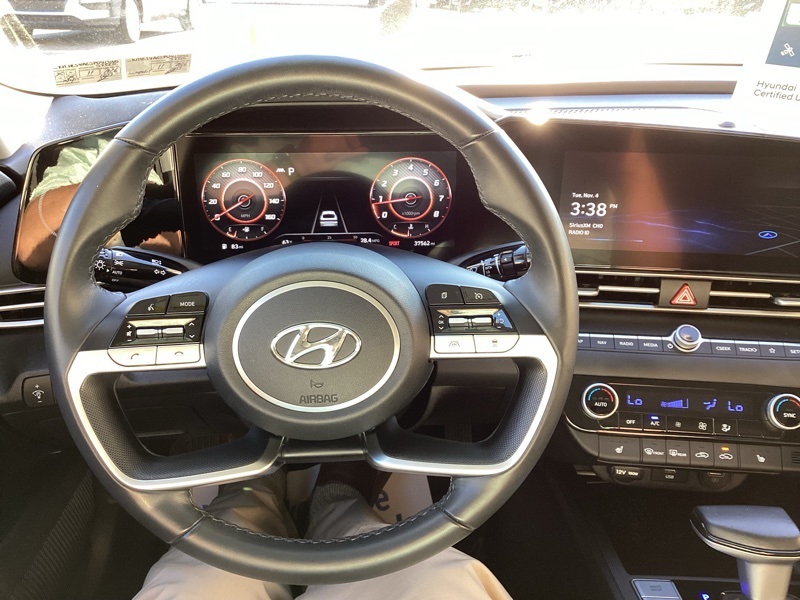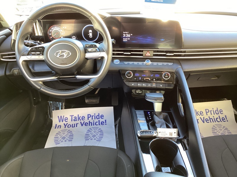 **ONE-OWNER**, **HEATED SEATS**, **BACKUP CAMERA**, **POWER DRIVERS SEAT**, **APPLE CAR PLAY**, **ANDROID AUTO**, **CERTIFIED PRE OWNED**, 16" x 6.5J Alloy Wheels, 2nd Row USB Charge Port, 4-Wheel Disc Brakes, 6 Speakers, ABS brakes, Air Conditioning, Alloy wheels, AM/FM radio: SiriusXM, Apple CarPlay & Android Auto, Auto High-beam Headlights, Automatic temperature control, Brake assist, Bumpers: body-color, Carpeted Floor Mats, Cloth Seat Trim, Convenience Package, Delay-off headlights, Driver door bin, Driver vanity mirror, Dual front impact airbags, Dual front side impact airbags, Electronic Parking Brake, Electronic Stability Control, Emergency communication system: Blue Link Connected Car Service (3-year complimentary subscription), Exterior Parking Camera Rear, First Aid Kit, Forward Collision Avoidance Assist, Front anti-roll bar, Front Bucket Seats, Front Center Armrest, Front dual zone A/C, Front reading lights, Front wheel independent suspension, Full 10.25" LCD TFT Cluster, Fully automatic headlights, Heated Front Seats, Heated Outside Mirrors, Illuminated entry, Leather-Wrapped Steering Wheel, LED Interior Lights, Low tire pressure warning, Occupant sensing airbag, Option Group 02, Outside temperature display, Overhead airbag, Overhead console, Panic alarm, Passenger door bin, Passenger vanity mirror, Power door mirrors, Power steering, Power windows, Radio: AM/FM/HD/SiriusXM Audio System, Radio: AM/FM/HD/SiriusXM Display Audio, Rear Bumper Applique, Rear window defroster, Remote keyless entry, Reversible Cargo Tray, Security system, Smart Cruise Control w/Stop & Go, Speed control, Speed-sensing steering, Steering wheel mounted audio controls, Tachometer, Telescoping steering wheel, Tilt steering wheel, Traction control, Trip computer, Variably intermittent wipers, Wheels: 17" x 7.0J Machine Finish Alloy, Wireless Charging Pad. Certified. Electric Shadow 2023 Hyundai Elantra SEL FWD CVT I4