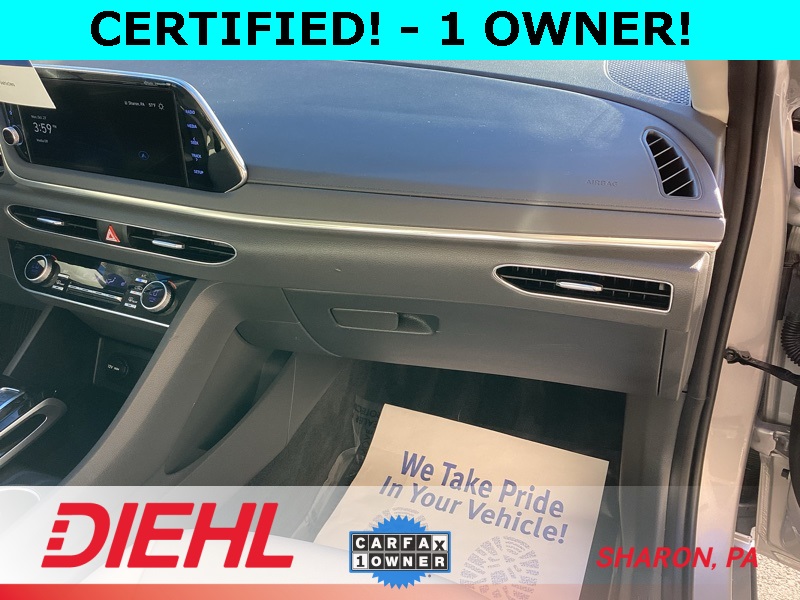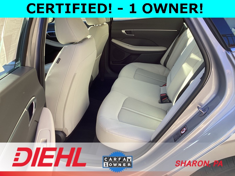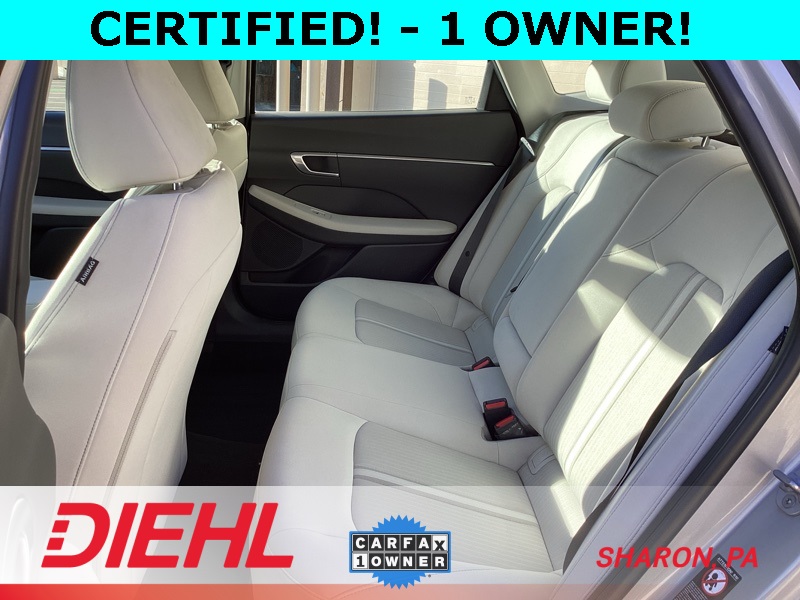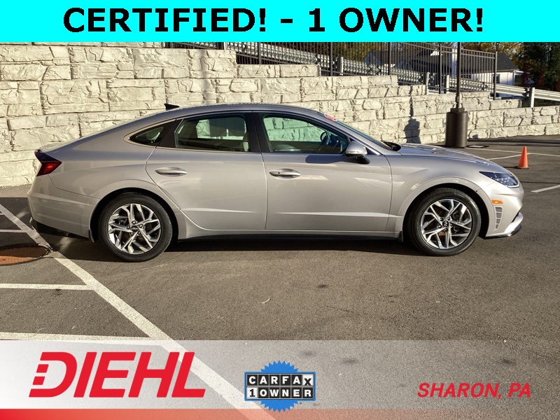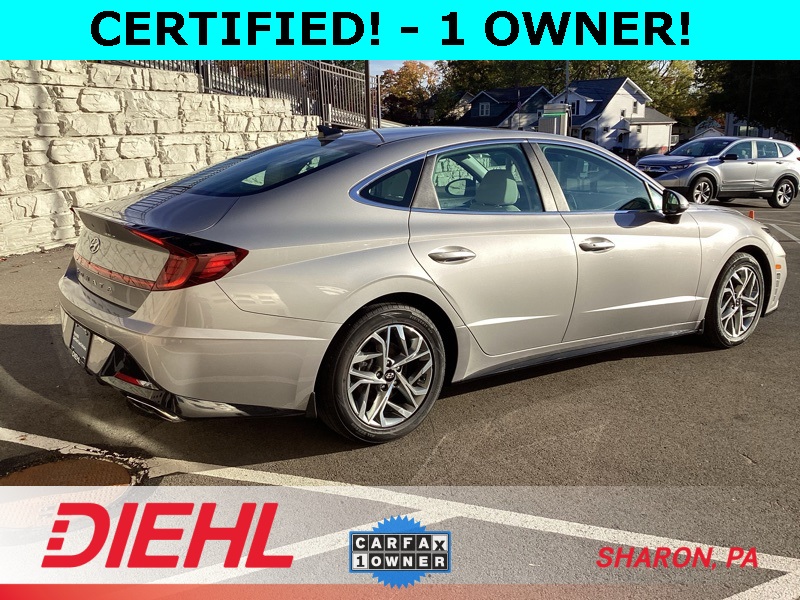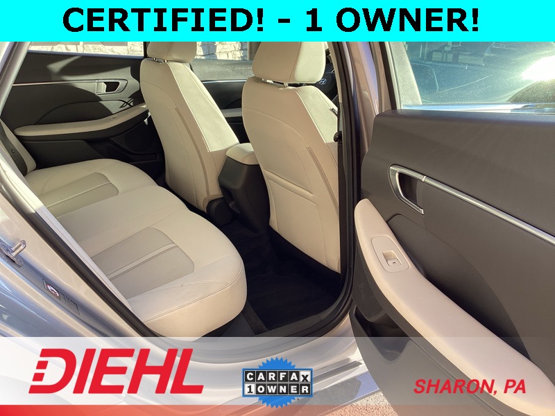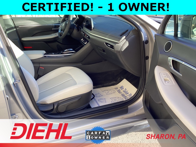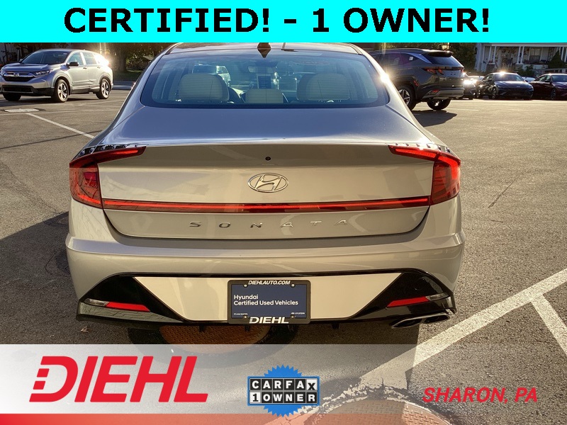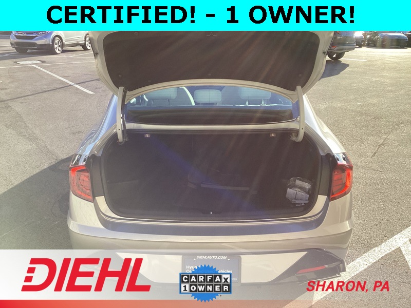 **NAVIGATION**, **APPLE CAR PLAY**, **ANDROID AUTO**, **CERTIFIED PRE OWNED**, Dark Gray Cloth, 17" x 7.0J Aluminum Alloy Wheels, 4-Wheel Disc Brakes, 6 Speakers, ABS brakes, Air Conditioning, All-Season Fitted Liners, Alloy wheels, AM/FM radio: SiriusXM, Apple CarPlay & Android Auto, Auto High-beam Headlights, Automatic temperature control, Brake assist, Bumpers: body-color, Cargo Block, Cargo Side Bins, Delay-off headlights, Driver door bin, Driver vanity mirror, Dual front impact airbags, Dual front side impact airbags, Electronic Stability Control, Emergency communication system: Blue Link Connected Car Service (3-year complimentary subscription), Exterior Parking Camera Rear, First Aid Kit, Four wheel independent suspension, Front anti-roll bar, Front Bucket Seats, Front Center Armrest, Front dual zone A/C, Front reading lights, Fully automatic headlights, Heated door mirrors, Heated Front Bucket Seats, Heated front seats, Illuminated entry, Knee airbag, Low tire pressure warning, Mud Guards, Occupant sensing airbag, Option Group 01, Outside temperature display, Overhead airbag, Overhead console, Panic alarm, Passenger door bin, Passenger vanity mirror, Power door mirrors, Power driver seat, Power steering, Power windows, Preferred Accessory Package, Premium Cloth Seating Surfaces, Radio data system, Radio: AM/FM/MP3/HD/SiriusXM Display Audio w/Nav, Rear anti-roll bar, Rear Bumper Applique, Rear seat center armrest, Rear side impact airbag, Rear window defroster, Remote keyless entry, Security system, Speed control, Speed-sensing steering, Speed-Sensitive Wipers, Split folding rear seat, Steering wheel mounted audio controls, Tachometer, Telescoping steering wheel, Tilt steering wheel, Traction control, Trip computer, Trunk Cargo Net, Turn signal indicator mirrors, Variably intermittent wipers. Certified. Curated Silver 2023 Hyundai Sonata SEL FWD 8-Speed Automatic with SHIFTRONIC 2.5L I4