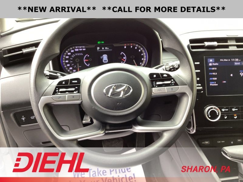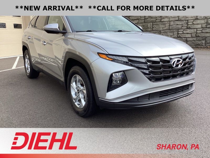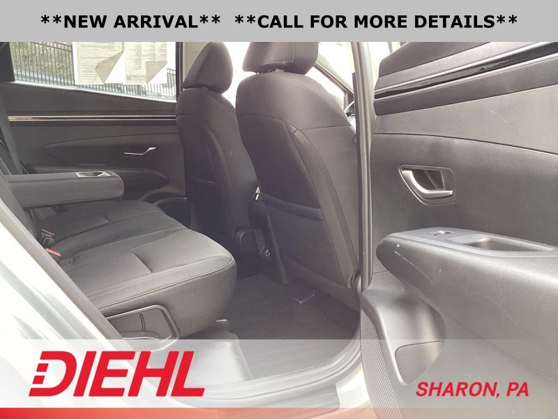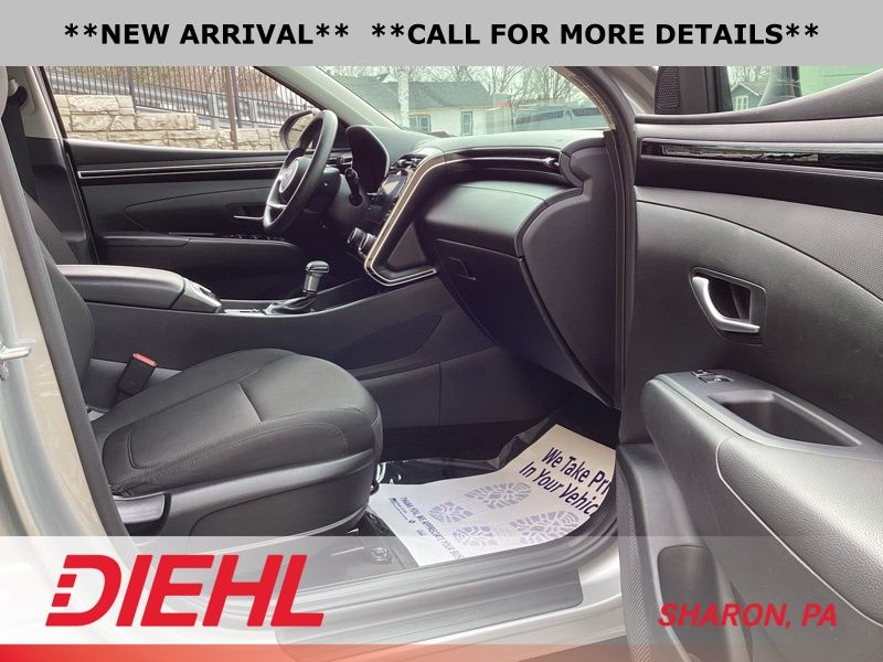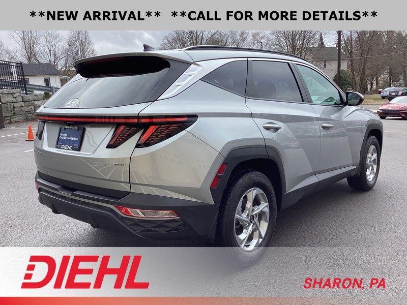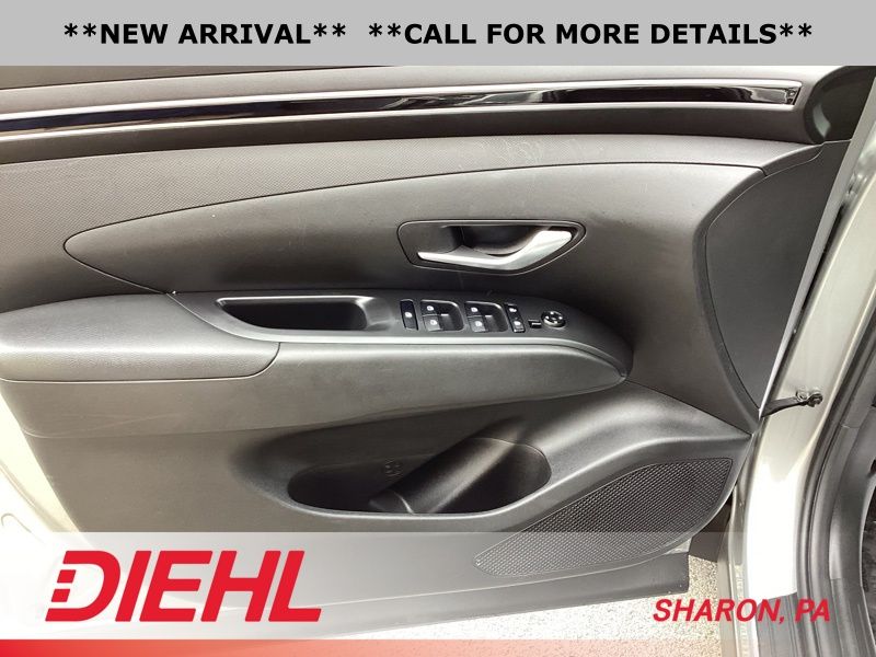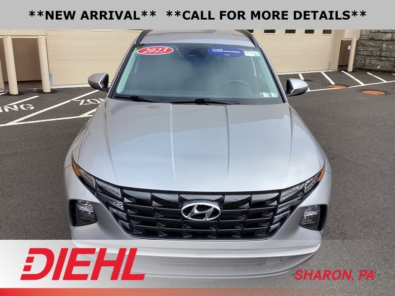 **CERTIFIED PRE OWNED**, AWD, 3.648 Axle Ratio, 4-Wheel Disc Brakes, 6 Speakers, ABS brakes, Air Conditioning, Alloy wheels, AM/FM radio: SiriusXM, Apple CarPlay & Android Auto, Auto High-beam Headlights, Brake assist, Bumpers: body-color, Cargo Tray, Carpeted Floor Mats, Delay-off headlights, Driver door bin, Driver vanity mirror, Dual front impact airbags, Dual front side impact airbags, Electronic Stability Control, Emergency communication system: Blue Link Connected Car Service (3-year complimentary subscription), First Aid Kit, Four wheel independent suspension, Front and Rear Mudguards, Front anti-roll bar, Front Bucket Seats, Front Center Armrest, Front reading lights, Fully automatic headlights, H-Tex Seat Trim, Heated door mirrors, Heated Front Bucket Seats, Heated front seats, Illuminated entry, Low tire pressure warning, Occupant sensing airbag, Option Group 01, Outside temperature display, Overhead airbag, Overhead console, Panic alarm, Passenger door bin, Passenger vanity mirror, Power door mirrors, Power driver seat, Power Liftgate, Power steering, Power windows, Radio data system, Radio: AM/FM/HD/SiriusXM Audio System, Rear anti-roll bar, Rear Bumper Applique, Rear seat center armrest, Rear window defroster, Rear window wiper, Remote keyless entry, Roof rack: rails only, Security system, Speed control, Split folding rear seat, Spoiler, Stain & Odor Resistant Cloth Seat Trim, Steering wheel mounted audio controls, Tachometer, Telescoping steering wheel, Tilt steering wheel, Traction control, Trip computer, Turn signal indicator mirrors, Variably intermittent wipers, Wheel Locks, Wheels: 17" x 7.0J" Alloy. Certified. Shimmering Silver 2023 Hyundai Tucson SEL AWD 8-Speed Automatic with SHIFTRONIC 2.5L I4 DGI DOHC 16V LEV3-ULEV70 187hp