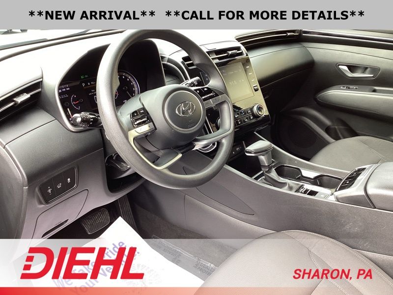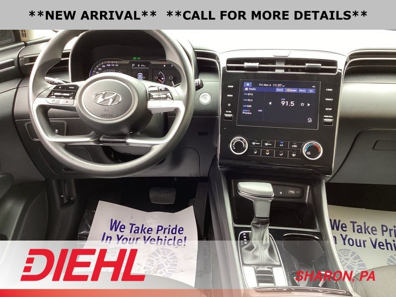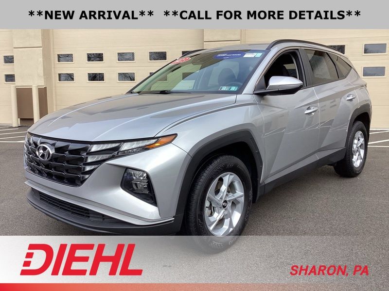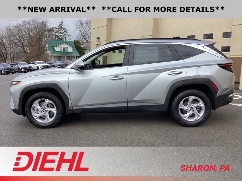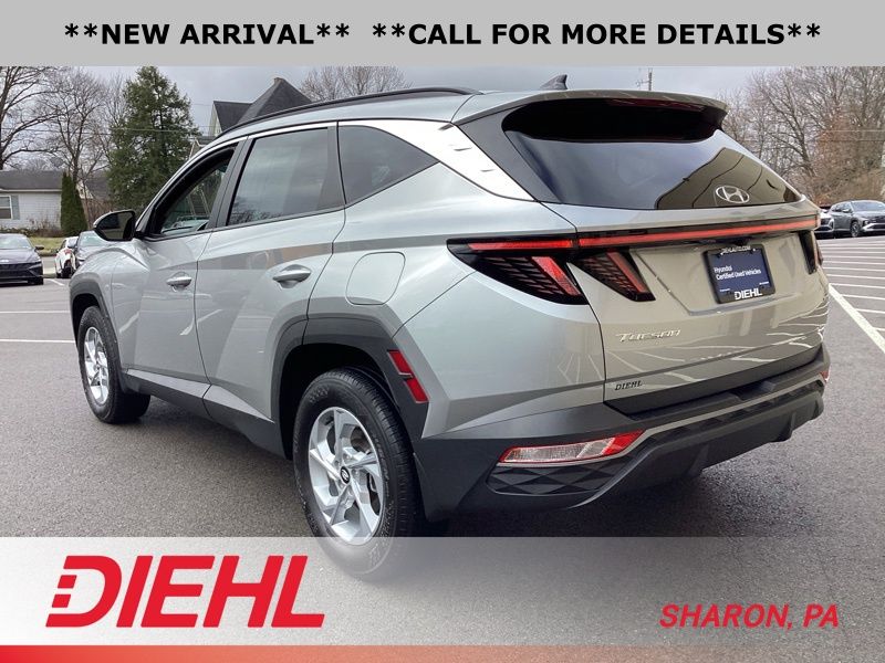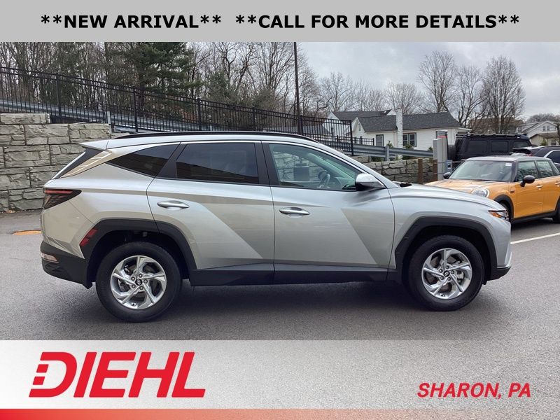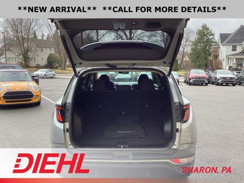 **CERTIFIED PRE OWNED**, AWD, 3.648 Axle Ratio, 4-Wheel Disc Brakes, 6 Speakers, ABS brakes, Air Conditioning, Alloy wheels, AM/FM radio: SiriusXM, Apple CarPlay & Android Auto, Auto High-beam Headlights, Brake assist, Bumpers: body-color, Cargo Tray, Carpeted Floor Mats, Delay-off headlights, Driver door bin, Driver vanity mirror, Dual front impact airbags, Dual front side impact airbags, Electronic Stability Control, Emergency communication system: Blue Link Connected Car Service (3-year complimentary subscription), First Aid Kit, Four wheel independent suspension, Front and Rear Mudguards, Front anti-roll bar, Front Bucket Seats, Front Center Armrest, Front reading lights, Fully automatic headlights, H-Tex Seat Trim, Heated door mirrors, Heated Front Bucket Seats, Heated front seats, Illuminated entry, Low tire pressure warning, Occupant sensing airbag, Option Group 01, Outside temperature display, Overhead airbag, Overhead console, Panic alarm, Passenger door bin, Passenger vanity mirror, Power door mirrors, Power driver seat, Power Liftgate, Power steering, Power windows, Radio data system, Radio: AM/FM/HD/SiriusXM Audio System, Rear anti-roll bar, Rear Bumper Applique, Rear seat center armrest, Rear window defroster, Rear window wiper, Remote keyless entry, Roof rack: rails only, Security system, Speed control, Split folding rear seat, Spoiler, Stain & Odor Resistant Cloth Seat Trim, Steering wheel mounted audio controls, Tachometer, Telescoping steering wheel, Tilt steering wheel, Traction control, Trip computer, Turn signal indicator mirrors, Variably intermittent wipers, Wheel Locks, Wheels: 17" x 7.0J" Alloy. Certified. Shimmering Silver 2023 Hyundai Tucson SEL AWD 8-Speed Automatic with SHIFTRONIC 2.5L I4 DGI DOHC 16V LEV3-ULEV70 187hp