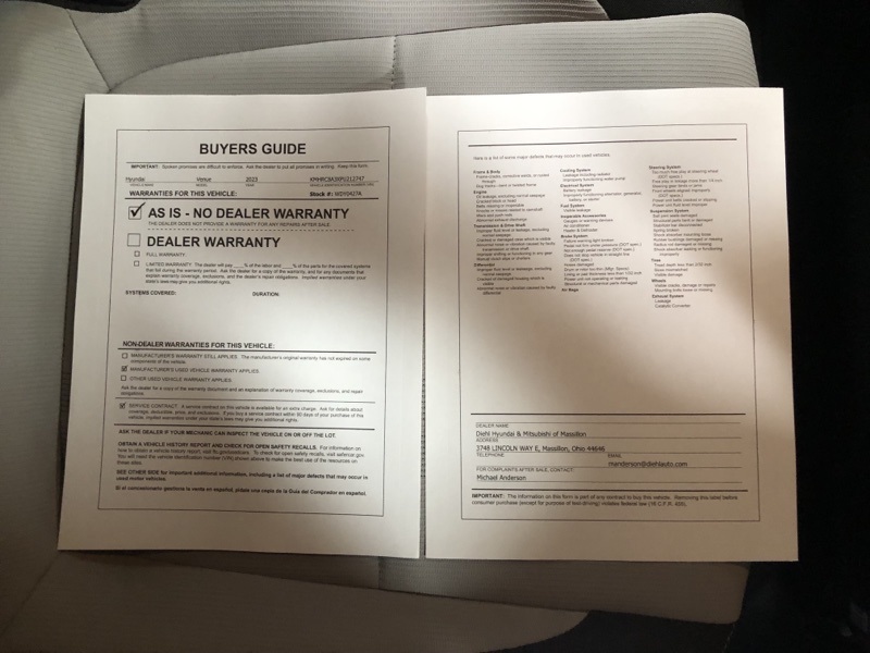 **One Owner**, **Clean Carfax**, **Android Auto/Apple Carplay**, **Blind Spot Detection**, **Frontal Crash Detection**, **Lane Keep Assist**, Power moonroof. Certified. 2023 Hyundai Venue SEL