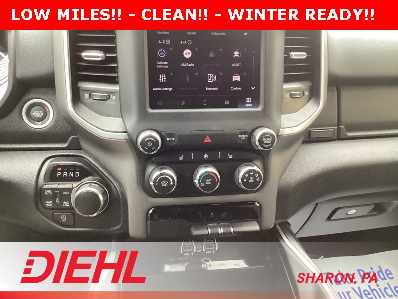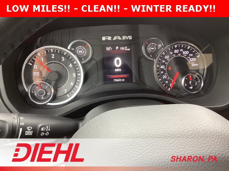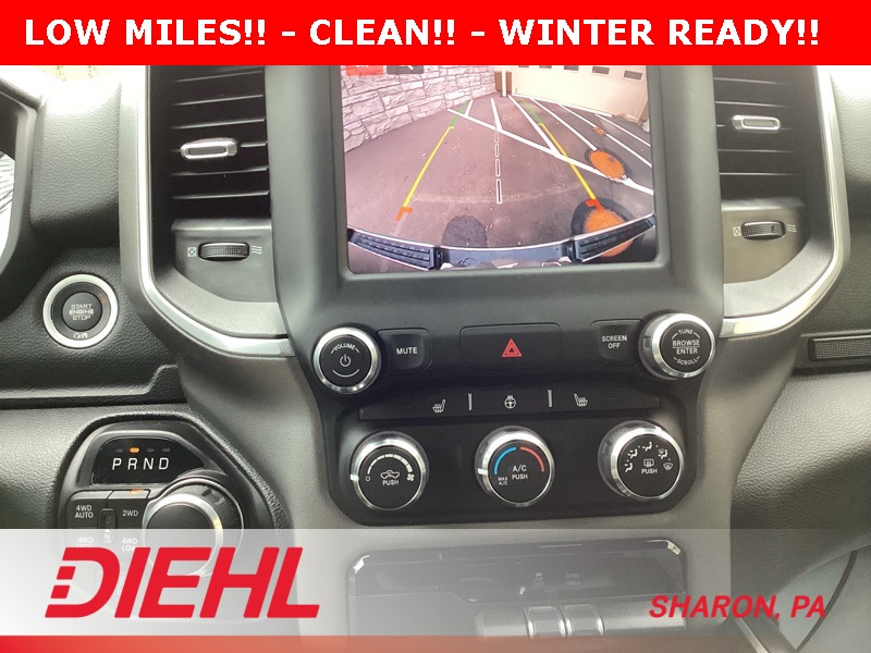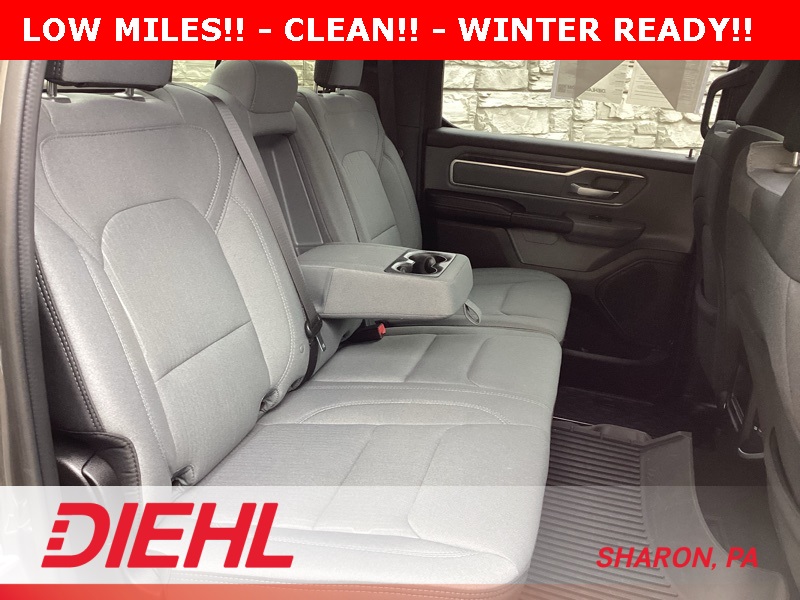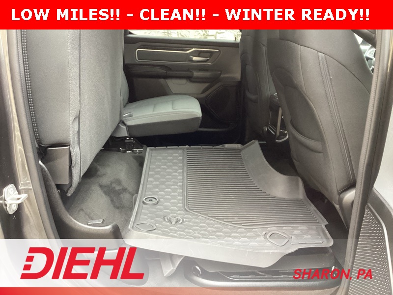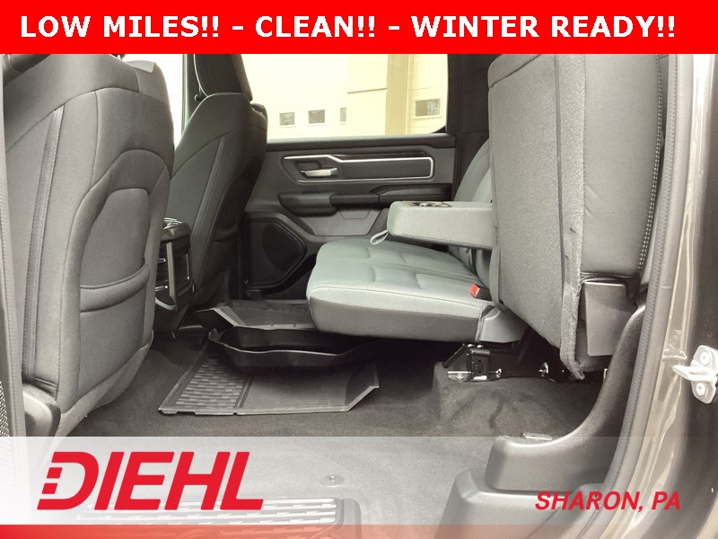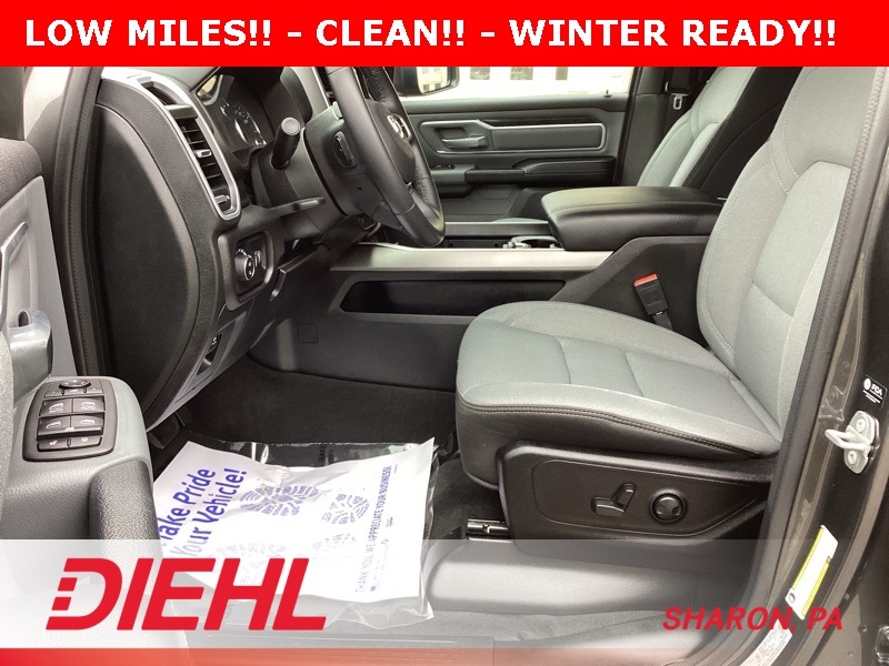 2nd Row In Floor Storage Bins, 3 Rear Seat Head Restraints, 3.21 Rear Axle Ratio, 4 Way Front Headrests, 4-Wheel Disc Brakes, 48V Belt Starter Generator, 4G LTE Wi-Fi Hot Spot, 6 Speakers, 8.4" Touchscreen Display, ABS brakes, Air Conditioning, Alloy wheels, AM/FM radio, Apple CarPlay, Auto-Dimming Exterior Driver Mirror, Auto-Dimming Rear-View Mirror, Big Horn Badge, Big Horn Level 1 Equipment Group, Black Exterior Mirrors, Black Premium Power Mirrors, Bluetooth Handsfree Phone & Audio, Brake assist, Bumpers: chrome, Class IV Receiver Hitch, Cloth Bench Seat, Compass, Connectivity - US/Canada, Convex Wide-Angle Exterior Mirror Insert, Delay-off headlights, Driver door bin, Dual front impact airbags, Dual front side impact airbags, Electric Shift-On-Demand Transfer Case, Electronic Stability Control, Emergency communication system: SiriusXM Guardian, Exterior Mirrors Courtesy Lamps, Exterior Mirrors w/Heating Element, Exterior Mirrors w/Supplemental Signals, For Details, Visit DriveUconnect.com, For More Info, Call 800-643-2112, Front anti-roll bar, Front Center Armrest w/Storage, Front Fog Lamps, Front reading lights, Front Seat Back Map Pockets, Front wheel independent suspension, Fully automatic headlights, Global Telematics Box Module (TBM), Glove Box Lamp, Google Android Auto, GPS Antenna Input, Heated door mirrors, Heated Front Seats, Heated Steering Wheel, Illuminated entry, Integrated Center Stack Radio, Integrated Voice Command w/Bluetooth, Leather steering wheel, Low tire pressure warning, MOPAR Front & Rear Rubber Floor Mats, Occupant sensing airbag, Outside temperature display, Overhead airbag, Overhead console, Panic alarm, ParkView Rear Back-Up Camera, Passenger door bin, Passenger Sun Visor w/Illuminated Mirror, Passenger vanity mirror, Power door mirrors, Power steering, Power windows, Power-Folding Mirrors, Quick Order Package 23Z Big Horn, Radio data system, Radio: Uconnect 3 w/5" Display, Radio: Uconnect 5 W w/8.4" Display, RAM Grille Badge - Chrome, Rear 60/40 Folding Seat, Rear anti-roll bar, Rear Dome w/On/Off Switch Lamp, Rear Power Sliding Window, Rear seat center armrest, Rear step bumper, Rear Wheelhouse Liners, Rear Window Defroster, Remote keyless entry, Remote Start System, SiriusXM Satellite Radio, Speed control, Split folding rear seat, Steering wheel mounted audio controls, Tachometer, Telescoping steering wheel, Tilt steering wheel, Traction control, Trip computer, USB Host Flip, Variably intermittent wipers, Voltmeter, Wheels: 18" x 8" Cast-Aluminum Painted. Granite Crystal Metallic Clearcoat 2023 Ram 1500 Big Horn/Lone Star 4WD 8-Speed Automatic 3.6L V6 24V VVT
