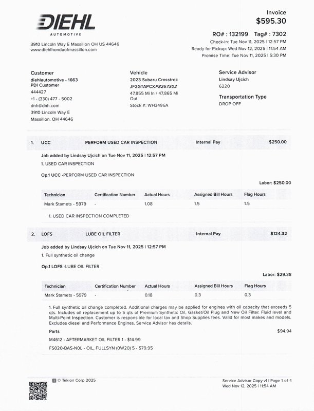 Diehl Automotive utilizes a system that generates market value pricing automatically for new and pre-owned vehicles and may cause errors, inaccuracies, or omissions. Some aftermarket additions or accessories may not be displayed properly. For accuracy, please contact the dealer for real-time, accurate pricing. A documentation fee of $477 applies and is not included in the pricing. Tax, Title, and Tags are also not included and must be paid by the purchaser. Some prices may include manufacturer-to-dealer offers that are not compatible with manufacturer special finance programs and/or lease offers. While great effort is made to ensure the accuracy of the information on this site, errors do occur so please verify information with a customer service rep. This is easily done by calling us or by visiting us at the dealership.