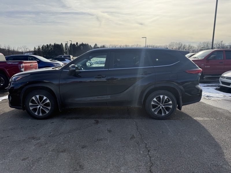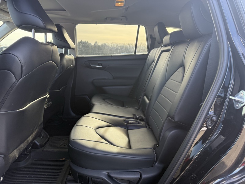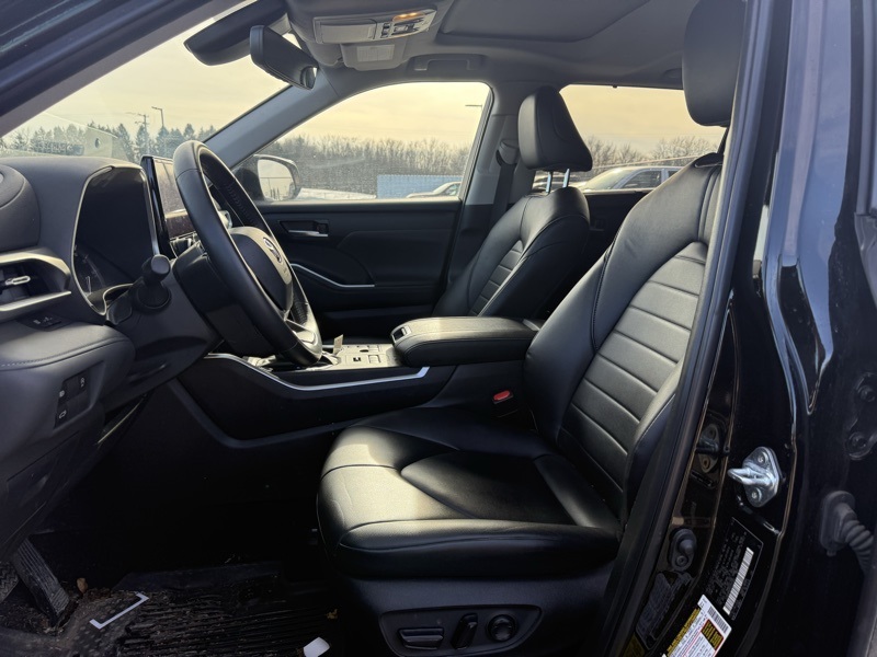 **ALL WHEEL DRIVE**, **BLUETOOTH HANDS FREE PHONE**, **LEATHER**, **MOONROOF**, **BACK-UP CAMERA**, **CLEAN CARFAX ONE OWNER**, **APPLE CARPLAY / ANDROID AUTO**, **POWER LIFTGATE**, **12.3" TOUCHSCREEN RADIO**, **HEATED FRONT SEATS**, **18" ALLOY WHEEL**, **THREE ROW SEATING**, **SECOND ROW BUCKETS**, **PRE COLLISION SYSTEM**, **ADAPTIVE CRUISE CONTROL**, **LANE KEEP ASSIST**, **AUTO HIGH BEAMS**, AWD, 3.329 Axle Ratio, 3rd row seats: split-bench, 4-Wheel Disc Brakes, 6 Speakers, ABS brakes, Active Cruise Control, Air Conditioning, Alloy wheels, AM/FM radio: SiriusXM, Apple CarPlay/Android Auto, Auto High-beam Headlights, Auto-dimming Rear-View mirror, Automatic temperature control, Brake assist, Bumpers: body-color, Delay-off headlights, Driver door bin, Driver vanity mirror, Dual front impact airbags, Dual front side impact airbags, Electronic Stability Control, Emergency communication system: Safety Connect (up to 10-year trial subscription), Exterior Parking Camera Rear, Four wheel independent suspension, Front anti-roll bar, Front Bucket Seats, Front Center Armrest, Front dual zone A/C, Front fog lights, Front reading lights, Fully automatic headlights, Garage door transmitter: HomeLink, Heated door mirrors, Heated Front Bucket Seats, Heated front seats, Illuminated entry, Knee airbag, Leather Shift Knob, Leather steering wheel, Low tire pressure warning, Occupant sensing airbag, Outside temperature display, Overhead airbag, Overhead console, Panic alarm, Passenger door bin, Passenger vanity mirror, Power door mirrors, Power driver seat, Power Liftgate, Power moonroof, Power passenger seat, Power steering, Power windows, Radio: 12.3" Toyota Audio Multimedia w/6 Speakers, Rear air conditioning, Rear anti-roll bar, Rear reading lights, Rear window defroster, Rear window wiper, Reclining 3rd row seat, Remote keyless entry, Roof rack: rails only, Security system, SofTex Seat Trim, Speed control, Speed-sensing steering, Split folding rear seat, Spoiler, Steering wheel mounted audio controls, Tachometer, Telescoping steering wheel, Tilt steering wheel, Traction control, Trip computer, Turn signal indicator mirrors, Variably intermittent wipers, Wheels: 18" Machined-Finish Alloy. Recent Arrival! CARFAX One-Owner. Clean CARFAX. Midnight Black Metallic 2023 Toyota Highlander XLE AWD 8-Speed Automatic 2.4L I4 PDI Turbocharged DOHC 16V LEV3-SULEV30 265hp