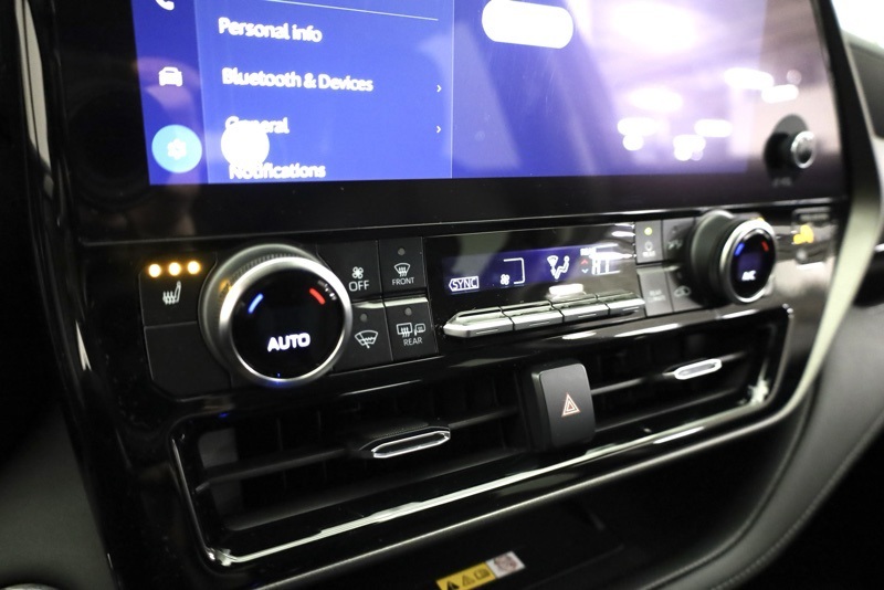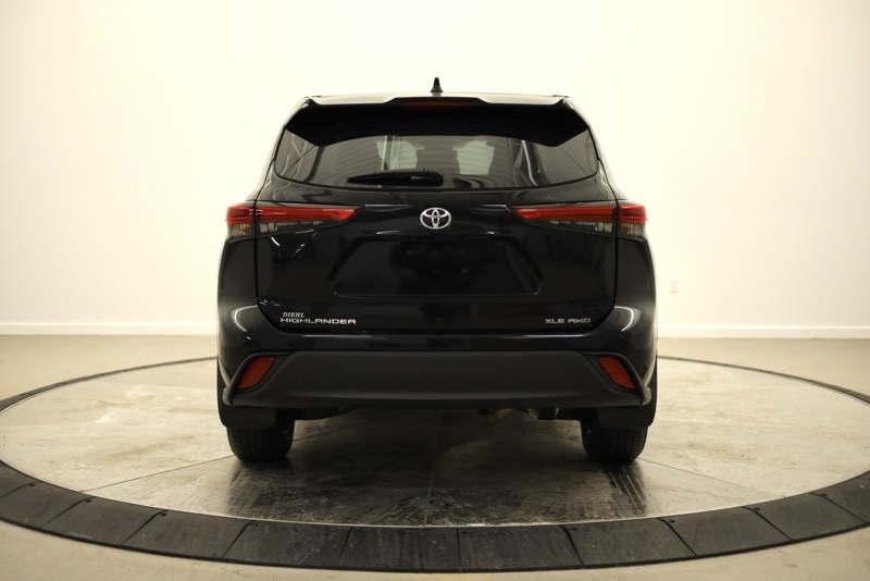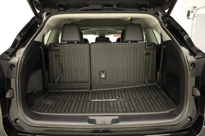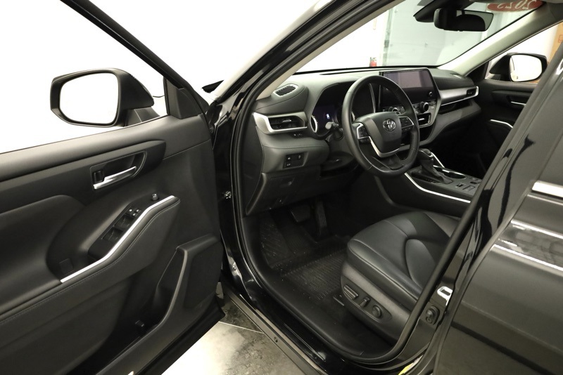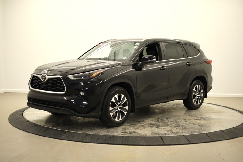 **ALL WHEEL DRIVE**, **BLUETOOTH HANDS FREE PHONE**, **LEATHER**, **MOONROOF**, **BACK-UP CAMERA**, **CLEAN CARFAX ONE OWNER**, **APPLE CARPLAY / ANDROID AUTO**, **POWER LIFTGATE**, **12.3" TOUCHSCREEN RADIO**, **HEATED FRONT SEATS**, **18" ALLOY WHEEL**, **THREE ROW SEATING**, **SECOND ROW BUCKETS**, **PRE COLLISION SYSTEM**, **ADAPTIVE CRUISE CONTROL**, **LANE KEEP ASSIST**, **AUTO HIGH BEAMS**, AWD, 3.329 Axle Ratio, 3rd row seats: split-bench, 4-Wheel Disc Brakes, 6 Speakers, ABS brakes, Active Cruise Control, Air Conditioning, Alloy wheels, AM/FM radio: SiriusXM, Apple CarPlay/Android Auto, Auto High-beam Headlights, Auto-dimming Rear-View mirror, Automatic temperature control, Brake assist, Bumpers: body-color, Delay-off headlights, Driver door bin, Driver vanity mirror, Dual front impact airbags, Dual front side impact airbags, Electronic Stability Control, Emergency communication system: Safety Connect (up to 10-year trial subscription), Exterior Parking Camera Rear, Four wheel independent suspension, Front anti-roll bar, Front Bucket Seats, Front Center Armrest, Front dual zone A/C, Front fog lights, Front reading lights, Fully automatic headlights, Garage door transmitter: HomeLink, Heated door mirrors, Heated Front Bucket Seats, Heated front seats, Illuminated entry, Knee airbag, Leather Shift Knob, Leather steering wheel, Low tire pressure warning, Occupant sensing airbag, Outside temperature display, Overhead airbag, Overhead console, Panic alarm, Passenger door bin, Passenger vanity mirror, Power door mirrors, Power driver seat, Power Liftgate, Power moonroof, Power passenger seat, Power steering, Power windows, Radio: 12.3" Toyota Audio Multimedia w/6 Speakers, Rear air conditioning, Rear anti-roll bar, Rear reading lights, Rear window defroster, Rear window wiper, Reclining 3rd row seat, Remote keyless entry, Roof rack: rails only, Security system, SofTex Seat Trim, Speed control, Speed-sensing steering, Split folding rear seat, Spoiler, Steering wheel mounted audio controls, Tachometer, Telescoping steering wheel, Tilt steering wheel, Traction control, Trip computer, Turn signal indicator mirrors, Variably intermittent wipers, Wheels: 18" Machined-Finish Alloy. CARFAX One-Owner. Clean CARFAX. Midnight Black Metallic 2023 Toyota Highlander XLE AWD 8-Speed Automatic 2.4L I4 PDI Turbocharged DOHC 16V LEV3-SULEV30 265hp