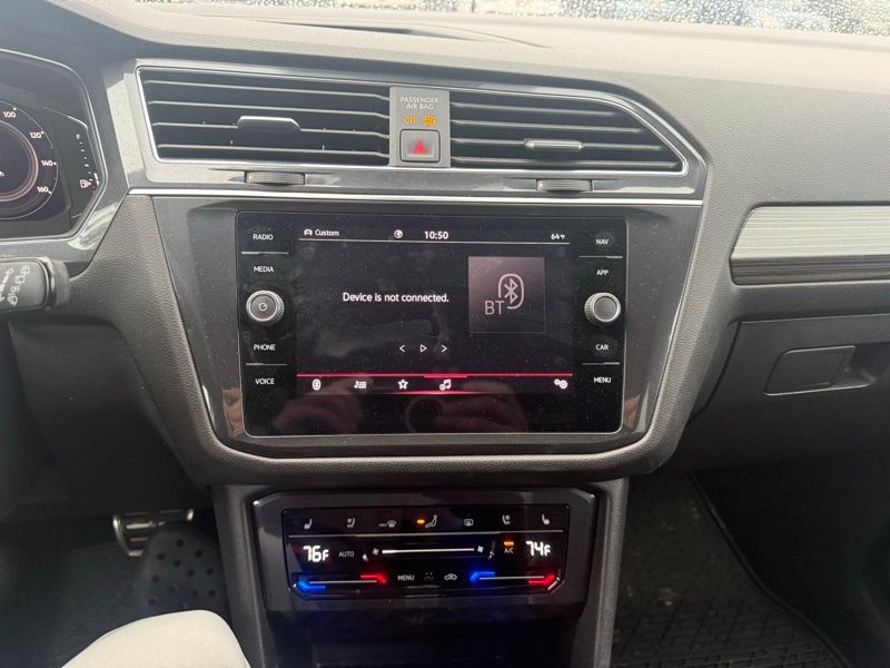**CLEAN CARFAX ONE OWNER**, **BACK UP CAMERA**, **PANORAMIC MOONROOF**, **POWER LIFT GATE**, **FRONT COLLISION MITIGATION**, **ADAPTIVE CRUISE CONTROL**, **LANE KEEP ASSIST**, **BLIND SPOT DETECTION**, **AUTO HIGH BEAMS**, **HEATED AND COOLED FRONT SEATS**, **HEATED STEERING WHEEL**, **KEYLESS ENTRY**, **FACTORY REMOTE START**, **MEMORY DRIVER SEAT**, AWD, 4-Wheel Disc Brakes, ABS brakes, Brake assist, Dual front impact airbags, Dual front side impact airbags, Electronic Stability Control, Emergency communication system: VW Car-Net Safe & Secure 5-year, Front anti-roll bar, Low tire pressure warning, Occupant sensing airbag, Overhead airbag, Rear anti-roll bar. Recent Arrival! CARFAX One-Owner. Clean CARFAX. Opal White 2023 Volkswagen Tiguan 2.0T SEL R-Line AWD 8-Speed Automatic with Tiptronic 2.0L TSI DOHC