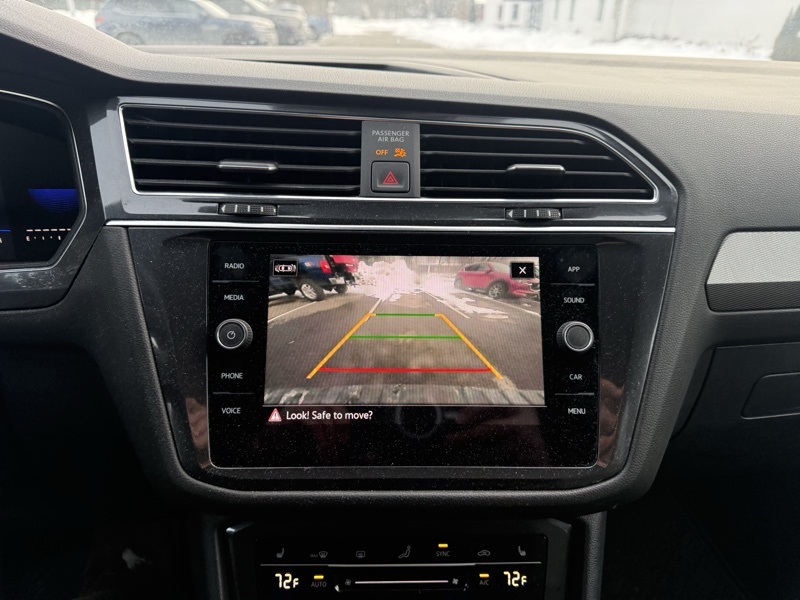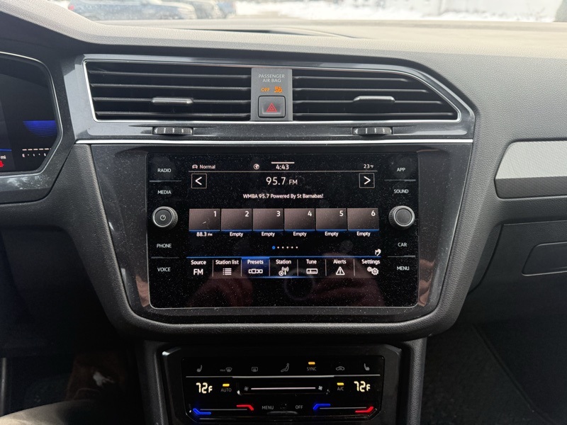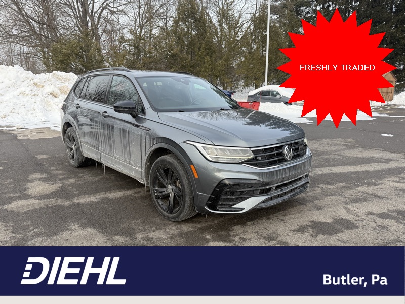 **VOLKSWAGON CERTIFIED**, **BAKUP CAMERA**, **DUAL ZONE CLIMATE CONTROL**, **HEATED FRONT SEATS**, **APPLE CARPLAY / ANDROID AUTO**, **PANORAMIC MOONROOF**, **POWER LIFTGATE**, **AUTO HEADLIGHTS**, **19" BLACK ALLOY WHEELS**, AWD, 4-Wheel Disc Brakes, ABS brakes, Brake assist, Dual front impact airbags, Dual front side impact airbags, Electronic Stability Control, Emergency communication system: VW Car-Net Safe & Secure 5-year, Front anti-roll bar, Low tire pressure warning, Occupant sensing airbag, Overhead airbag, Power moonroof, Rear anti-roll bar. Recent Arrival! CARFAX One-Owner. Clean CARFAX. Platinum Gray Metallic 2023 Volkswagen Tiguan 2.0T SE R-Line Black AWD 8-Speed Automatic with Tiptronic 2.0L TSI DOHC