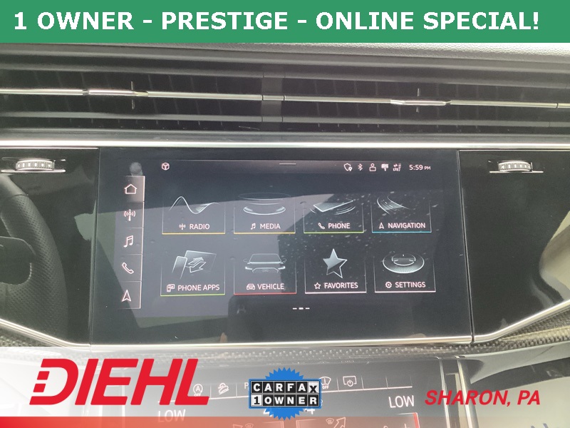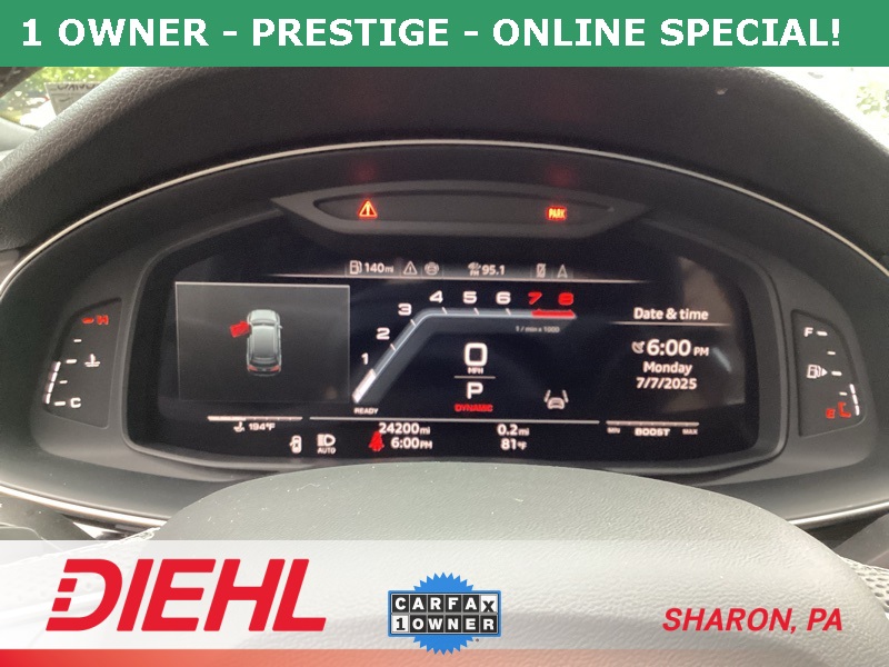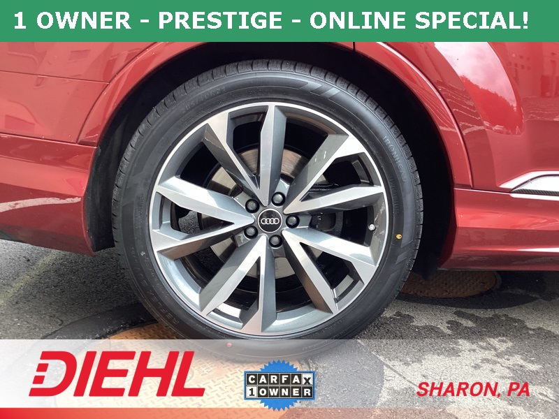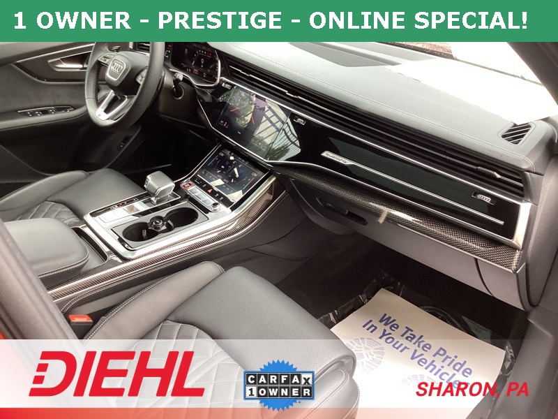 **ONE-OWNER**, **PANORAMIC MOONROOF**, **HEATED SEATS**, **HEATED STEERING WHEEL**, **COOLED SEATS**, **BLIND SPOT MONITOR**, **FRONT COLLISSION ALERT**, **REAR PARK ASSIST**, **FRONT PARK ASSIST**, **BACKUP CAMERA**, **SURROUND VIEW CAMERA**, **ADAPTIVE CRUISE CONTROL**, **STEERING ASSIST**, **LANE KEEP ASSIST**, **POWER DRIVERS SEAT**, **POWER PASSENGER SEAT**, **HEATED REAR SEATS**, **PREMIUM SOUND SYSTEM**, **LEATHER SEATS**, **NAVIGATION**, **APPLE CAR PLAY**, **ANDROID AUTO**, 19 Speakers, 3rd row seats: bench, 4-Wheel Disc Brakes, ABS brakes, Adaptive suspension, Air Conditioning, All-Weather Floor Mats, Alloy wheels, AM/FM radio: SiriusXM w/ 360L, Audi Black Rings & Badges, Auto High-beam Headlights, Auto-dimming door mirrors, Auto-dimming Rear-View mirror, Auto-leveling suspension, Automatic temperature control, Axle Ratio: TBD, Bang & Olufsen Premium Sound System w/3D Sound, Black Exterior Trim, Black Optic Package, Brake assist, Bumpers: body-color, Carbon Exterior Mirror Housings, Carbon Front & Side Trim, Carbon Package, Cargo Mat, Compass, Delay-off headlights, Diamond Stitched Valcona Leather Seat Trim, Driver door bin, Driver vanity mirror, Dual front impact airbags, Dual front side impact airbags, Dual-Pane Acoustic Glass for Side Windows, Dynamic Center Caps, Electronic Stability Control, Emergency communication system: Audi connect CARE, Executive Package, Exterior Parking Camera Rear, Four wheel independent suspension, Front & Rear Doors Audi S Beam, Front anti-roll bar, Front Bucket Seats, Front Center Armrest, Front dual zone A/C, Front fog lights, Front reading lights, Fully automatic headlights, Garage door transmitter: HomeLink, Head-Up Display, Heated door mirrors, Heated Front S Sport Seats, Heated front seats, Heated Rear Seats, Heated steering wheel, Illuminated entry, Intersection Assist, Leather Shift Knob, Leather steering wheel, Low tire pressure warning, Memory seat, Navigation system: Audi MMI Navigation plus with Touch Response, Occupant sensing airbag, Outside temperature display, Overhead airbag, Overhead console, Panic alarm, Passenger door bin, Passenger vanity mirror, Power door mirrors, Power driver seat, Power Liftgate, Power moonroof: Panoramic, Power passenger seat, Power Soft-Closing Doors, Power steering, Power windows, Prestige Package, Privacy Trunk Cover, Radio data system, Radio: Audi MMI Navigation w/MMI Touch Response, Rain sensing wipers, Rear air conditioning, Rear anti-roll bar, Rear Door/Side Windows & Tailgate Sunshades, Rear dual zone A/C, Rear fog lights, Rear reading lights, Rear seat center armrest, Rear side impact airbag, Rear window defroster, Rear window wiper, Reclining 3rd row seat, Remote keyless entry, Remote Park Assist Plus, Roof rack: rails only, Security system, Speed-sensing steering, Split folding rear seat, Spoiler, Sports Exhaust Resonator Kit, Steering wheel memory, Steering wheel mounted audio controls, Tachometer, Telescoping steering wheel, Tilt steering wheel, Traction control, Traffic Sign Recognition, Trailer Hitch, Trip computer, Turn signal indicator mirrors, Variably intermittent wipers, Ventilated Front Seats, Wheels: 21" 5-Twin-Spoke V Design. Matador Red Metallic 2024 Audi SQ7 Prestige quattro quattro 8-Speed Automatic with Tiptronic 4.0L V8 Turbocharged DOHC 32V LEV3-ULEV125 500hp