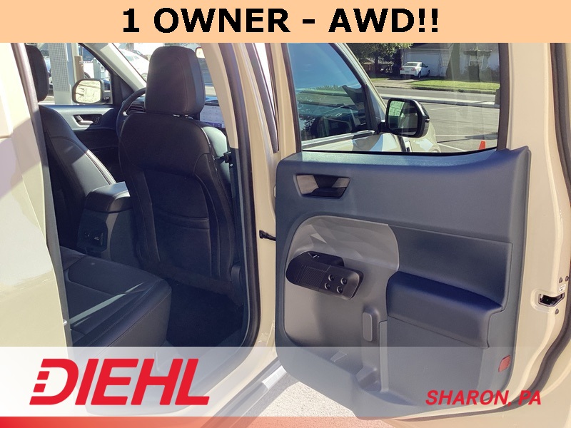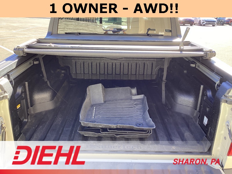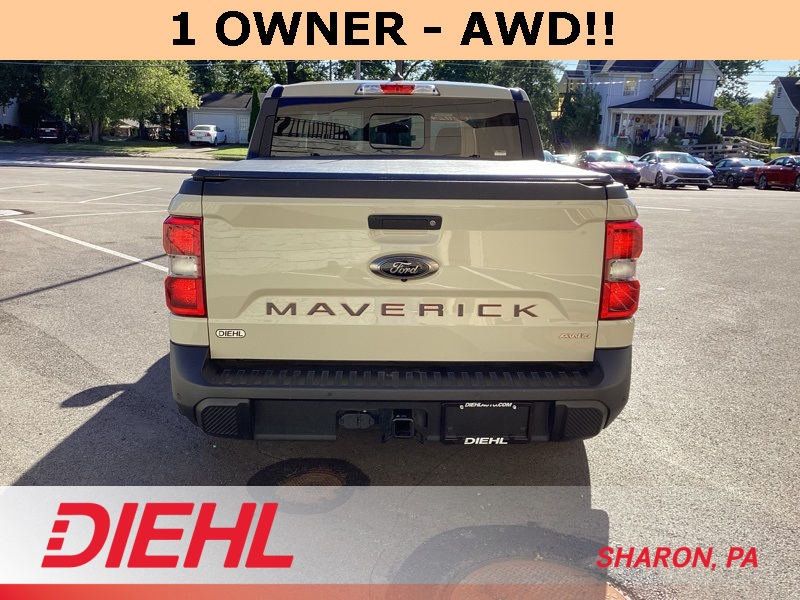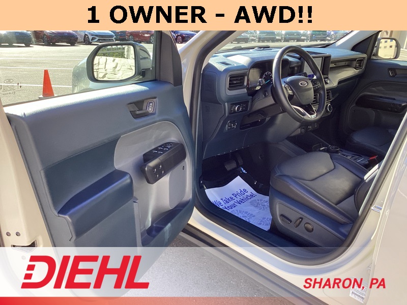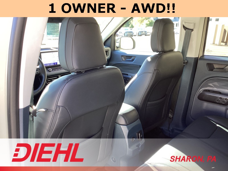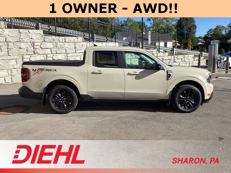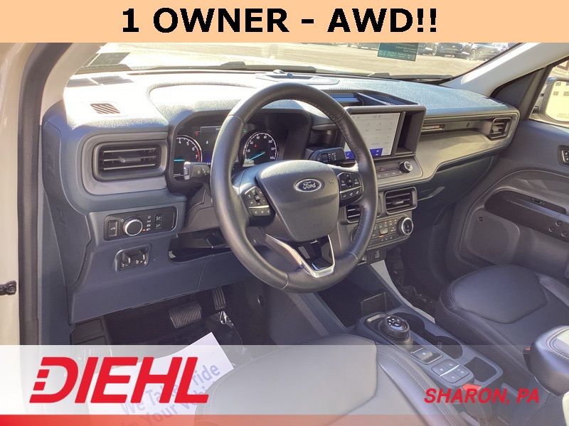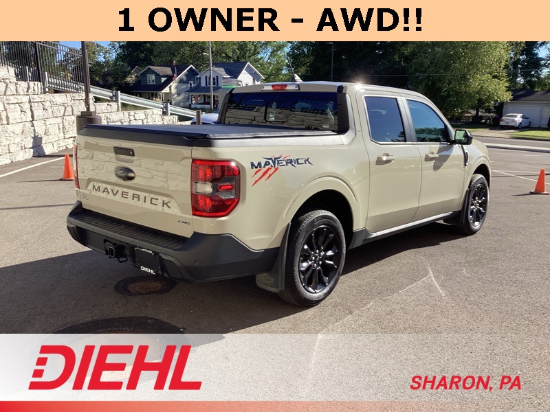 **ONE-OWNER**, **HEATED SEATS**, **BACKUP CAMERA**, **POWER DRIVERS SEAT**, **TOW PACKAGE**, **NAVIGATION**, **APPLE CAR PLAY**, **ANDROID AUTO**, 4-Wheel Disc Brakes, 4K Tow Package, 8 Speakers, ABS brakes, ActiveX Trimmed Front Bucket Seats, Air Conditioning, Alloy wheels, AM/FM radio: SiriusXM, Auto High-beam Headlights, Automatic temperature control, Black Appearance Package, Black Grille, Black Headlamps, Black Interior Accents, Black Taillamps, Brake assist, Bumpers: body-color, Compass, Delay-off headlights, Driver door bin, Driver vanity mirror, Dual front impact airbags, Dual front side impact airbags, Electronic Stability Control, Emergency communication system: 911 Assist, Equipment Group 500A Standard, Exterior Parking Camera Rear, Four wheel independent suspension, Front & Back Black Edition Ford Logo, Front & Rear Floor Liners w/o Carpet Mats, Front anti-roll bar, Front Bucket Seats, Front Center Armrest, Front dual zone A/C, Front reading lights, Fully automatic headlights, Heated door mirrors, Heated front seats, Heated steering wheel, Higher Capacity Radiator, Illuminated entry, Knee airbag, Low tire pressure warning, Navigation System, Occupant sensing airbag, Outside temperature display, Overhead airbag, Overhead console, Panic alarm, Passenger door bin, Passenger vanity mirror, Power door mirrors, Power driver seat, Power steering, Power windows, Protective Film Hood/Fenders, Radio data system, Radio: B&O Sound System by Bang & Olufsen, Rear anti-roll bar, Rear Parking Sensors, Rear seat center armrest, Rear step bumper, Remote keyless entry, Security system, SiriusXM Radio, Speed control, Speed-sensing steering, Steering wheel mounted audio controls, SYNC 3 Communications & Entertainment System, Tachometer, Telescoping steering wheel, Tilt steering wheel, Tonneau Pickup Box Cover - Soft Folding, Traction control, Trailer Brake Controller, Trailer Hitch Receiver, Transmission Oil Cooler, Trip computer, Upgraded Cooling Fan, Upgraded Drive Ratio, Wheels: 18" Machined-Face Bright Aluminum, Wheels: 18" Unique Machined-Face Ebony Aluminum. Terrain 2024 Ford Maverick Lariat AWD 8-Speed Automatic EcoBoost 2.0L I4 GTDi DOHC Turbocharged VCT