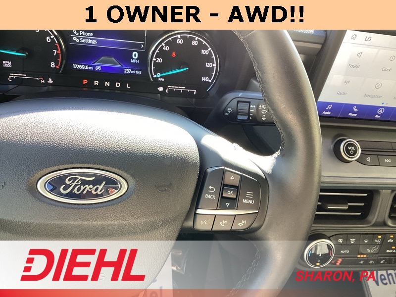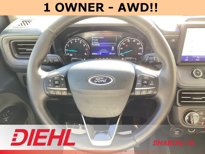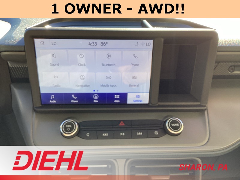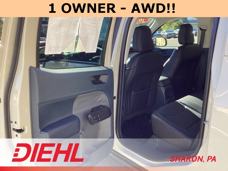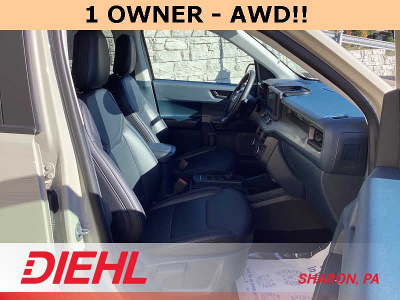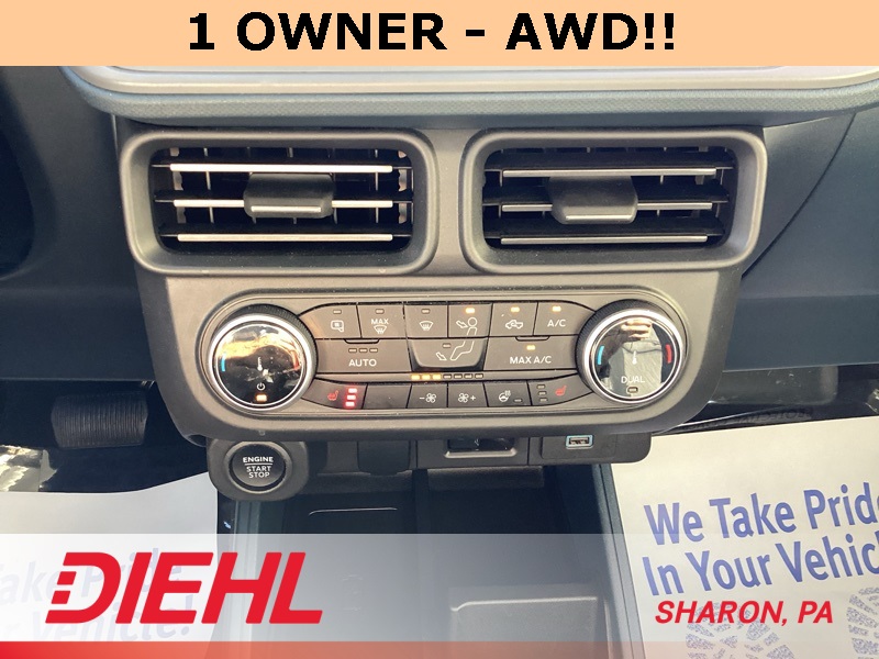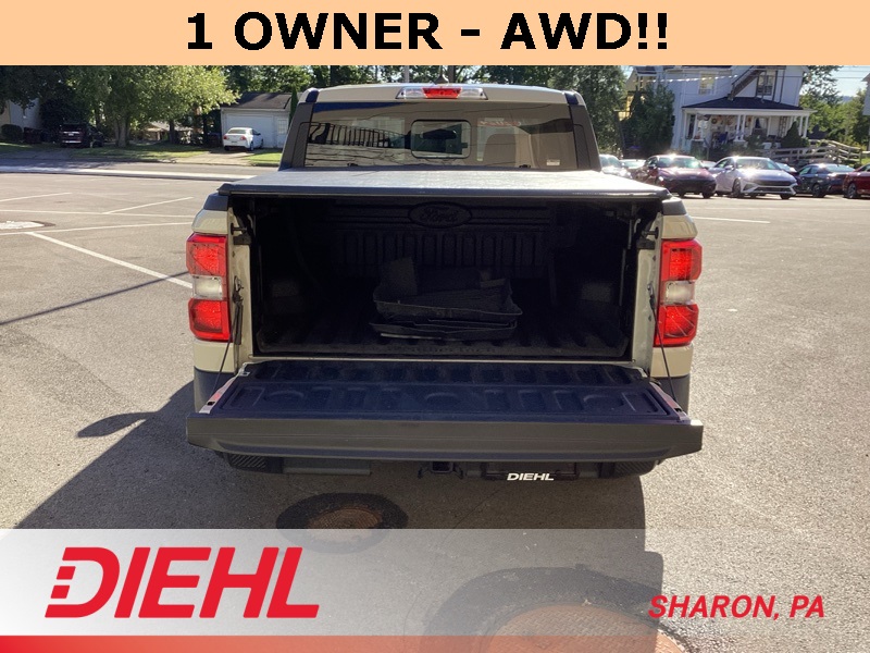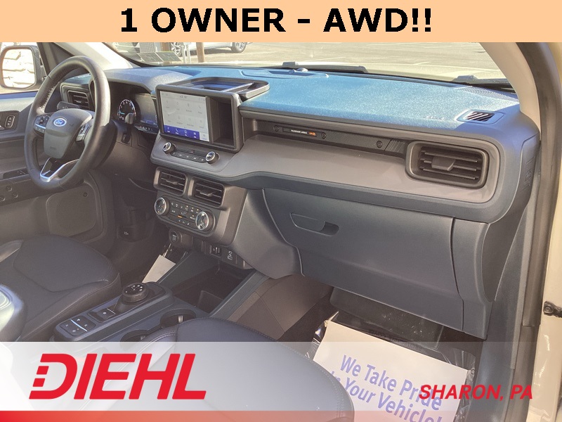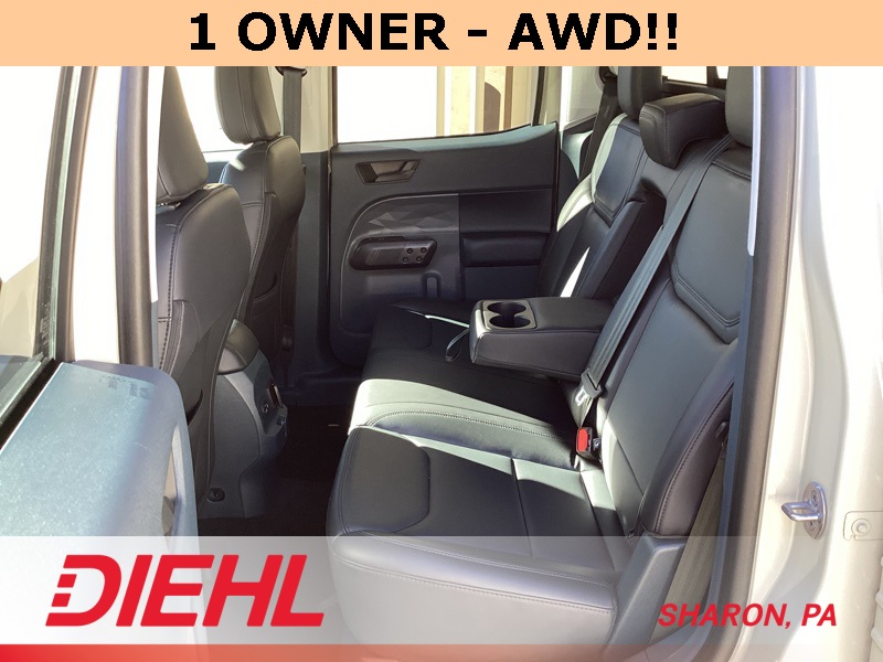 **ONE-OWNER**, **HEATED SEATS**, **BACKUP CAMERA**, **POWER DRIVERS SEAT**, **TOW PACKAGE**, **NAVIGATION**, **APPLE CAR PLAY**, **ANDROID AUTO**, 4-Wheel Disc Brakes, 4K Tow Package, 8 Speakers, ABS brakes, ActiveX Trimmed Front Bucket Seats, Air Conditioning, Alloy wheels, AM/FM radio: SiriusXM, Auto High-beam Headlights, Automatic temperature control, Black Appearance Package, Black Grille, Black Headlamps, Black Interior Accents, Black Taillamps, Brake assist, Bumpers: body-color, Compass, Delay-off headlights, Driver door bin, Driver vanity mirror, Dual front impact airbags, Dual front side impact airbags, Electronic Stability Control, Emergency communication system: 911 Assist, Equipment Group 500A Standard, Exterior Parking Camera Rear, Four wheel independent suspension, Front & Back Black Edition Ford Logo, Front & Rear Floor Liners w/o Carpet Mats, Front anti-roll bar, Front Bucket Seats, Front Center Armrest, Front dual zone A/C, Front reading lights, Fully automatic headlights, Heated door mirrors, Heated front seats, Heated steering wheel, Higher Capacity Radiator, Illuminated entry, Knee airbag, Low tire pressure warning, Navigation System, Occupant sensing airbag, Outside temperature display, Overhead airbag, Overhead console, Panic alarm, Passenger door bin, Passenger vanity mirror, Power door mirrors, Power driver seat, Power steering, Power windows, Protective Film Hood/Fenders, Radio data system, Radio: B&O Sound System by Bang & Olufsen, Rear anti-roll bar, Rear Parking Sensors, Rear seat center armrest, Rear step bumper, Remote keyless entry, Security system, SiriusXM Radio, Speed control, Speed-sensing steering, Steering wheel mounted audio controls, SYNC 3 Communications & Entertainment System, Tachometer, Telescoping steering wheel, Tilt steering wheel, Tonneau Pickup Box Cover - Soft Folding, Traction control, Trailer Brake Controller, Trailer Hitch Receiver, Transmission Oil Cooler, Trip computer, Upgraded Cooling Fan, Upgraded Drive Ratio, Wheels: 18" Machined-Face Bright Aluminum, Wheels: 18" Unique Machined-Face Ebony Aluminum. Terrain 2024 Ford Maverick Lariat AWD 8-Speed Automatic EcoBoost 2.0L I4 GTDi DOHC Turbocharged VCT