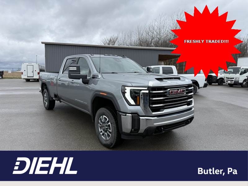 **CLEAN CARFAX ONE OWNER**, **BACK UP CAMERA**, **PRE COLLISION SYSTEM**, **LANE KEEP ASSIST**, **AUTO HIGH BEAMS**, **13.4" TOUCHSCREEN RADIO**, **APPLE CARPLAY / ANDROID AUTO**, **SLE CONVIENCE PACKAGE**, **DUAL ZONE CLIMATE CONTROL**, **FACTERY REMOTE START**, **GOOSENECK/5TH WHEEL PACKAGE**, **FACTORY SPRAY IN LINER**, **X31 PACKAGE**, **OFF ROAD SUSPENSION**, **SKID PLATES**, **REAR WINDOW DEFOGGER**, 10-Speed Automatic, 4WD, Black Cloth, 10-Way Power Driver Seat Adjuster w/Lumbar, 120-Volt Bed Mounted Power Outlet, 120-Volt Instrument Panel Power Outlet, 2 Charge-Only Rear USB Ports, 2 Charge/Data USB Ports, 2-Speed Electronic Shift Transfer Case, 4-Way Manual Driver Seat Adjuster, 4-Wheel Disc Brakes, ABS brakes, Brake assist, Chrome Surround Grille w/Chrome Insert Bars, Deep-Tinted Glass, Dual front impact airbags, Dual front side impact airbags, Dual-Zone Automatic Climate Control, Electric Rear-Window Defogger, Electronic Stability Control, Front anti-roll bar, Front wheel independent suspension, Gooseneck/5th Wheel Prep Package, HD Rear Vision Camera Delete, Integrated Trailer Brake Controller, Keyless Open & Start, Lane Departure Warning System, LED Fog Lamps, Low tire pressure warning, Manual Tilt-Wheel Steering Column, Manual Tilt-Wheel/Telescoping Steering Column, Occupant sensing airbag, Overhead airbag, Preferred Equipment Group 3SA, Push Button Start, Remote Start Package, Remote Vehicle Starter System, SiriusXM w/360L, SLE Convenience Package, Spray-On Pickup Bedliner w/GMC Logo, Steering Wheel Audio Controls, Suspension Package, Unauthorized Entry Theft-Deterrent System, Wireless Phone Projection. Recent Arrival! CARFAX One-Owner. Clean CARFAX. Sterling Metallic 2024 GMC Sierra 3500HD SLE 4WD 10-Speed Automatic 6.6L V8