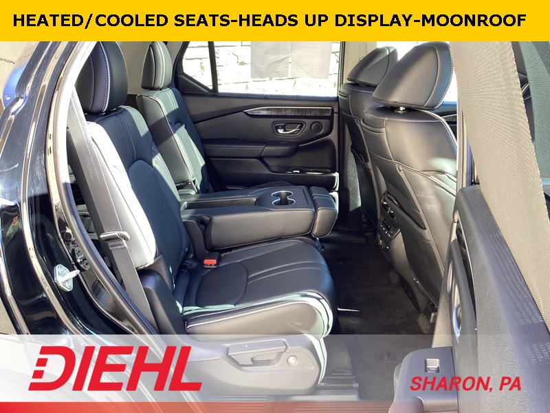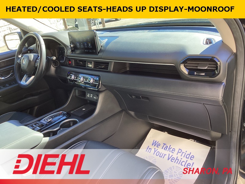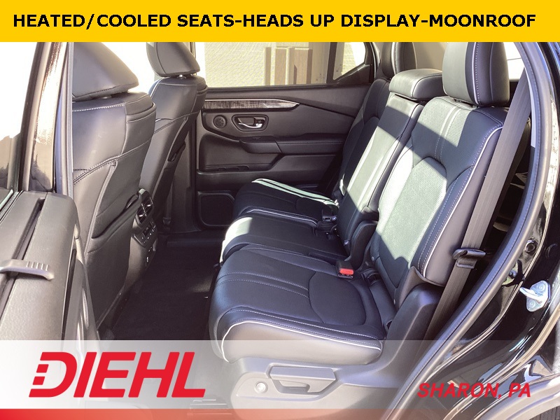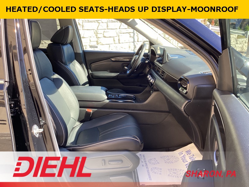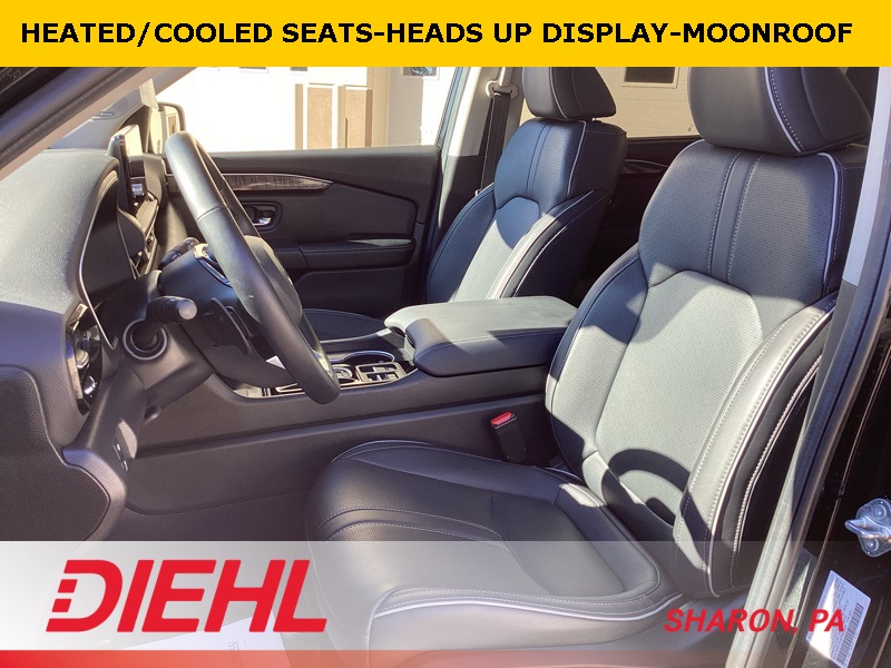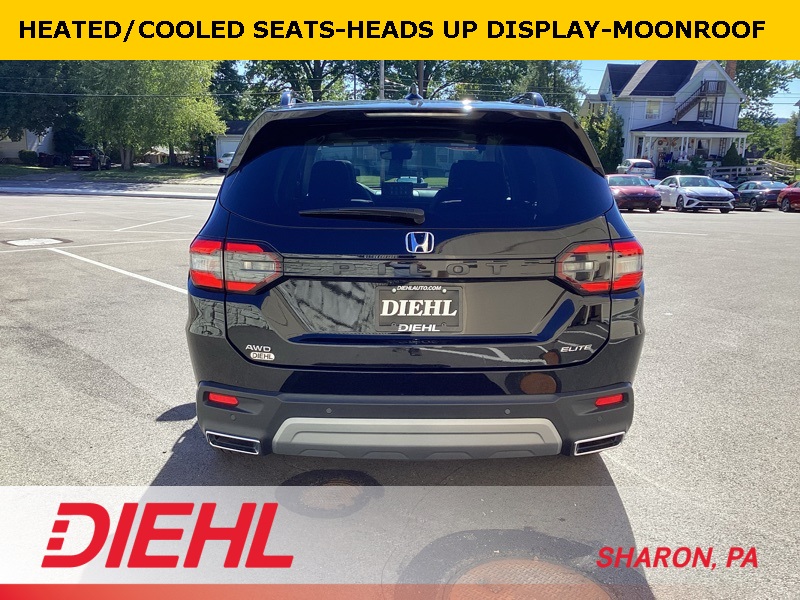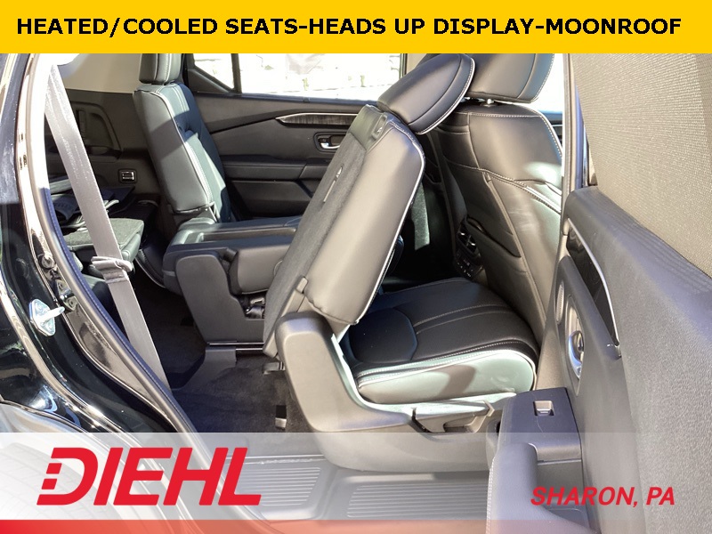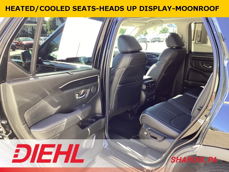 **ONE-OWNER**, **HEATED SEATS**, **COOLED SEATS**, **BLIND SPOT MONITOR**, **REAR PARK ASSIST**, **BACKUP CAMERA**, **POWER DRIVERS SEAT**, **POWER PASSENGER SEAT**, **NAVIGATION**, **APPLE CAR PLAY**, **ANDROID AUTO**, **POWER SUNROOF**, HEADS UP DISPLAY, POWER LIFTGATE, MEMORY SETTINGS, HEATED REAR SEATS, AWD, 12 Speakers, 3rd row seats: split-bench, 4-Wheel Disc Brakes, ABS brakes, Adaptive Cruise Control: Adaptive Cruise Control (ACC) with Low-Speed Follow, Air Conditioning, Alloy wheels, AM/FM radio: SiriusXM, Apple CarPlay/Android Auto, Auto High-beam Headlights, Auto-dimming door mirrors, Auto-dimming Rear-View mirror, Automatic temperature control, Axle Ratio: 4.167, Blind Spot Information (BSI) System warning, Brake assist, Bumpers: body-color, Compass, Delay-off headlights, Driver door bin, Driver vanity mirror, Dual front impact airbags, Dual front side impact airbags, Electronic Stability Control, Emergency communication system: HondaLink, Exterior Parking Camera Rear, Four wheel independent suspension, Front anti-roll bar, Front Bucket Seats, Front Center Armrest, Front dual zone A/C, Front fog lights, Front reading lights, Fully automatic headlights, Garage door transmitter: HomeLink, Heads-Up Display, Heated & Ventilated Front Bucket Seats, Heated door mirrors, Heated front seats, Heated rear seats, Heated steering wheel, Illuminated entry, Knee airbag, Lane departure: Lane Keeping Assist System (LKAS) active, Low tire pressure warning, Memory seat, Navigation system: Honda Satellite-Linked Navigation System, Occupant sensing airbag, Outside temperature display, Overhead airbag, Overhead console, Panic alarm, Passenger door bin, Passenger vanity mirror, Perforated Leather Seat Trim, Power door mirrors, Power driver seat, Power Liftgate, Power moonroof, Power passenger seat, Power steering, Power windows, Radio data system, Radio: BOSE Premium Sound System, Rain sensing wipers, Rear air conditioning, Rear anti-roll bar, Rear reading lights, Rear seat center armrest, Rear window defroster, Rear window wiper, Reclining 3rd row seat, Remote keyless entry, Security system, Speed control, Speed-sensing steering, Speed-Sensitive Wipers, Split folding rear seat, Spoiler, Steering wheel mounted audio controls, Tachometer, Telescoping steering wheel, Tilt steering wheel, Traction control, Trip computer, Turn signal indicator mirrors, Variably intermittent wipers, Ventilated front seats, Wheels: 20" Shark Gray Machine Face w/Blk Lug Nuts. Platinum White Pearl 2024 Honda Pilot Elite AWD 10-Speed Automatic 3.5L V6 DOHC 24V