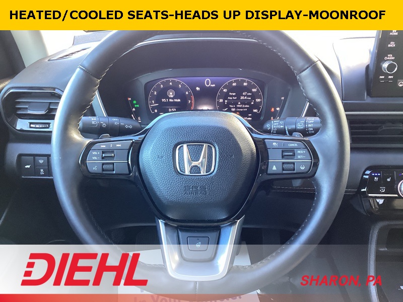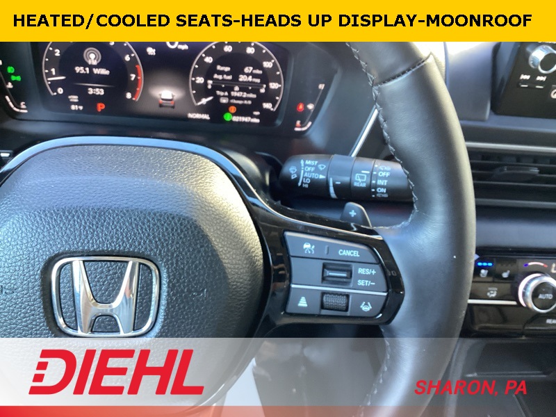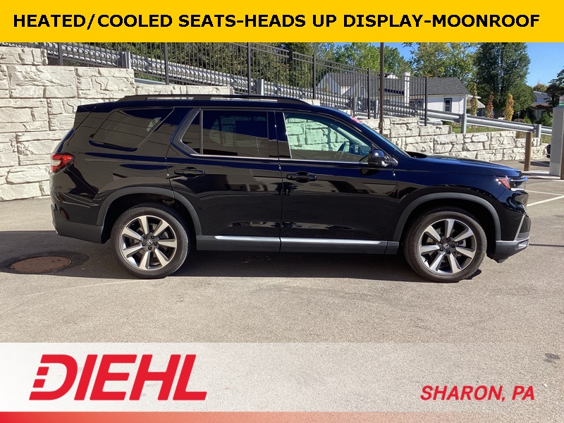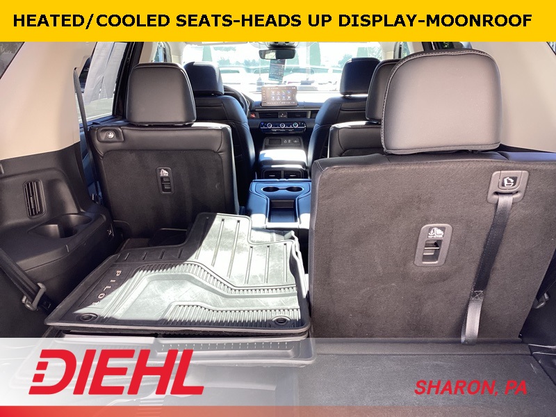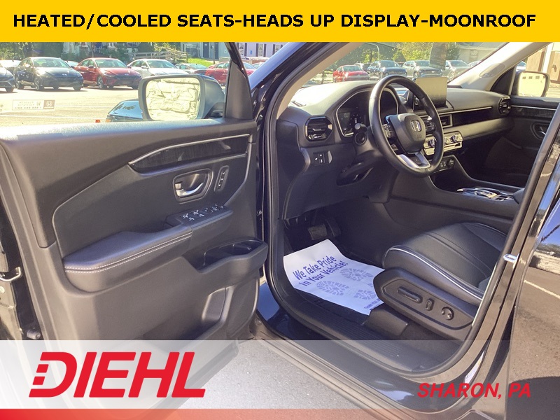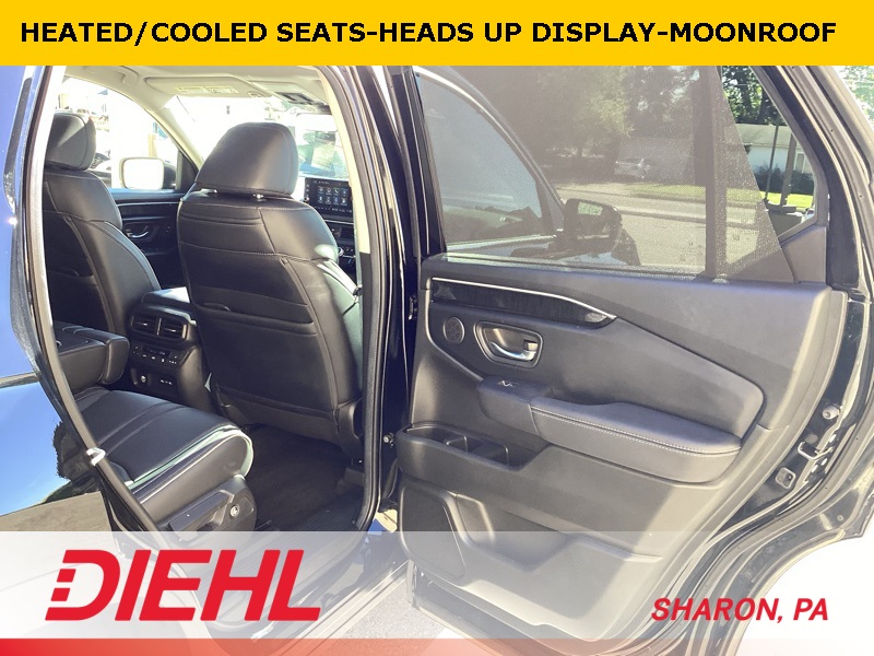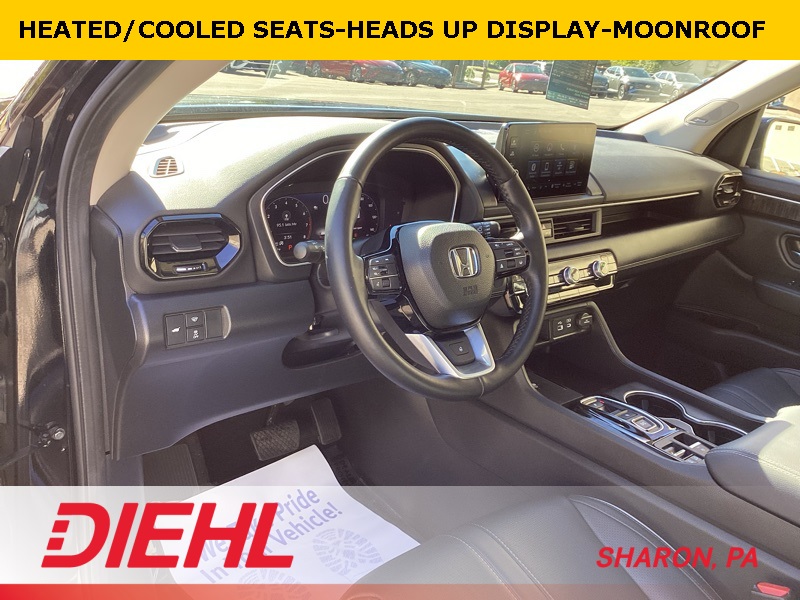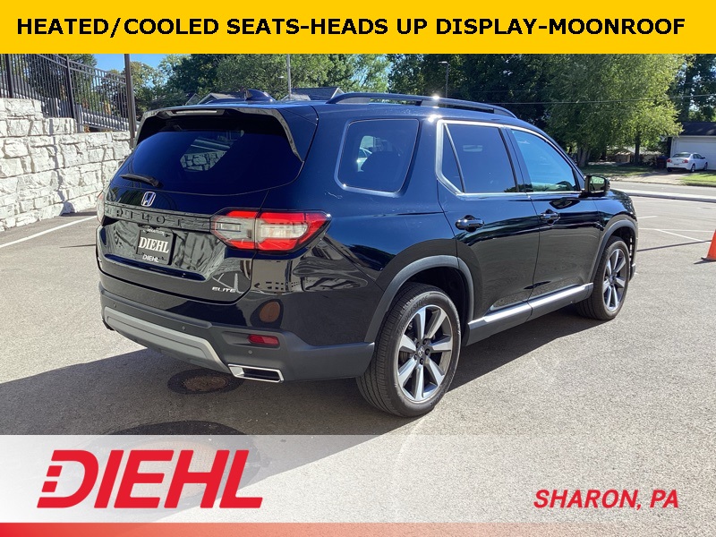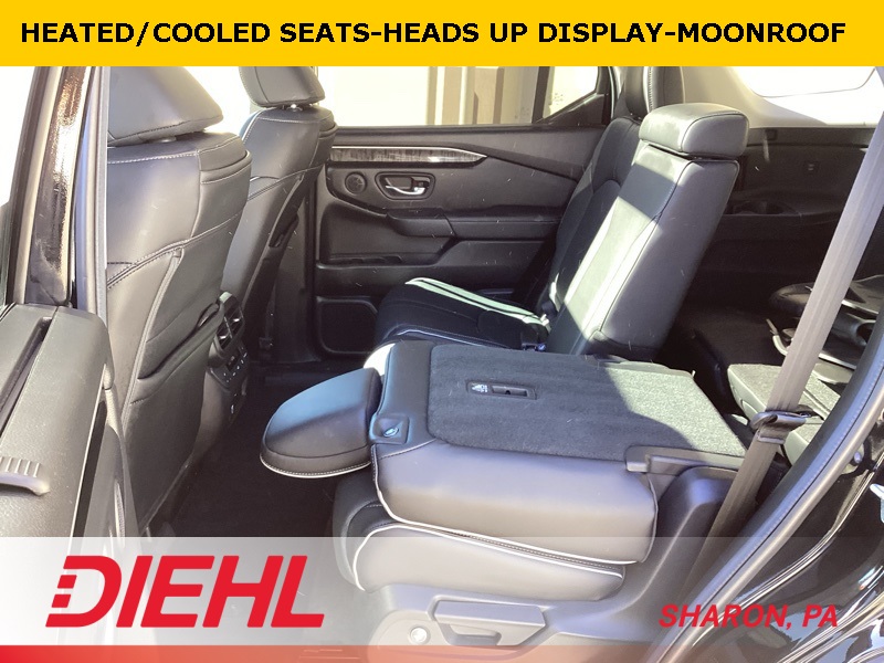 **ONE-OWNER**, **HEATED SEATS**, **COOLED SEATS**, **BLIND SPOT MONITOR**, **REAR PARK ASSIST**, **BACKUP CAMERA**, **POWER DRIVERS SEAT**, **POWER PASSENGER SEAT**, **NAVIGATION**, **APPLE CAR PLAY**, **ANDROID AUTO**, **POWER SUNROOF**, HEADS UP DISPLAY, POWER LIFTGATE, MEMORY SETTINGS, HEATED REAR SEATS, AWD, 12 Speakers, 3rd row seats: split-bench, 4-Wheel Disc Brakes, ABS brakes, Adaptive Cruise Control: Adaptive Cruise Control (ACC) with Low-Speed Follow, Air Conditioning, Alloy wheels, AM/FM radio: SiriusXM, Apple CarPlay/Android Auto, Auto High-beam Headlights, Auto-dimming door mirrors, Auto-dimming Rear-View mirror, Automatic temperature control, Axle Ratio: 4.167, Blind Spot Information (BSI) System warning, Brake assist, Bumpers: body-color, Compass, Delay-off headlights, Driver door bin, Driver vanity mirror, Dual front impact airbags, Dual front side impact airbags, Electronic Stability Control, Emergency communication system: HondaLink, Exterior Parking Camera Rear, Four wheel independent suspension, Front anti-roll bar, Front Bucket Seats, Front Center Armrest, Front dual zone A/C, Front fog lights, Front reading lights, Fully automatic headlights, Garage door transmitter: HomeLink, Heads-Up Display, Heated & Ventilated Front Bucket Seats, Heated door mirrors, Heated front seats, Heated rear seats, Heated steering wheel, Illuminated entry, Knee airbag, Lane departure: Lane Keeping Assist System (LKAS) active, Low tire pressure warning, Memory seat, Navigation system: Honda Satellite-Linked Navigation System, Occupant sensing airbag, Outside temperature display, Overhead airbag, Overhead console, Panic alarm, Passenger door bin, Passenger vanity mirror, Perforated Leather Seat Trim, Power door mirrors, Power driver seat, Power Liftgate, Power moonroof, Power passenger seat, Power steering, Power windows, Radio data system, Radio: BOSE Premium Sound System, Rain sensing wipers, Rear air conditioning, Rear anti-roll bar, Rear reading lights, Rear seat center armrest, Rear window defroster, Rear window wiper, Reclining 3rd row seat, Remote keyless entry, Security system, Speed control, Speed-sensing steering, Speed-Sensitive Wipers, Split folding rear seat, Spoiler, Steering wheel mounted audio controls, Tachometer, Telescoping steering wheel, Tilt steering wheel, Traction control, Trip computer, Turn signal indicator mirrors, Variably intermittent wipers, Ventilated front seats, Wheels: 20" Shark Gray Machine Face w/Blk Lug Nuts. Platinum White Pearl 2024 Honda Pilot Elite AWD 10-Speed Automatic 3.5L V6 DOHC 24V