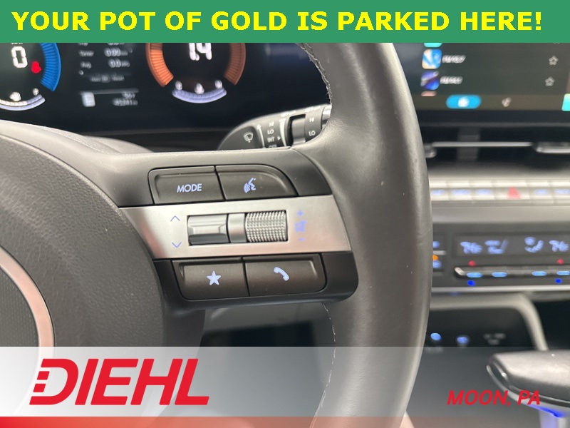 Inside, the 2024 Hyundai Kona SEL keeps things comfortable and connected. A power driver seat with lumbar support, leather wrapped steering wheel, and smart climate control make every drive feel tailored to you. The touchscreen infotainment system with Apple CarPlay, Android Auto, Bluetooth, and HD Radio keeps your playlists and navigation right where you want them. Remote start lets you warm it up or cool it down before you even step outside, because comfort should never be optional.
