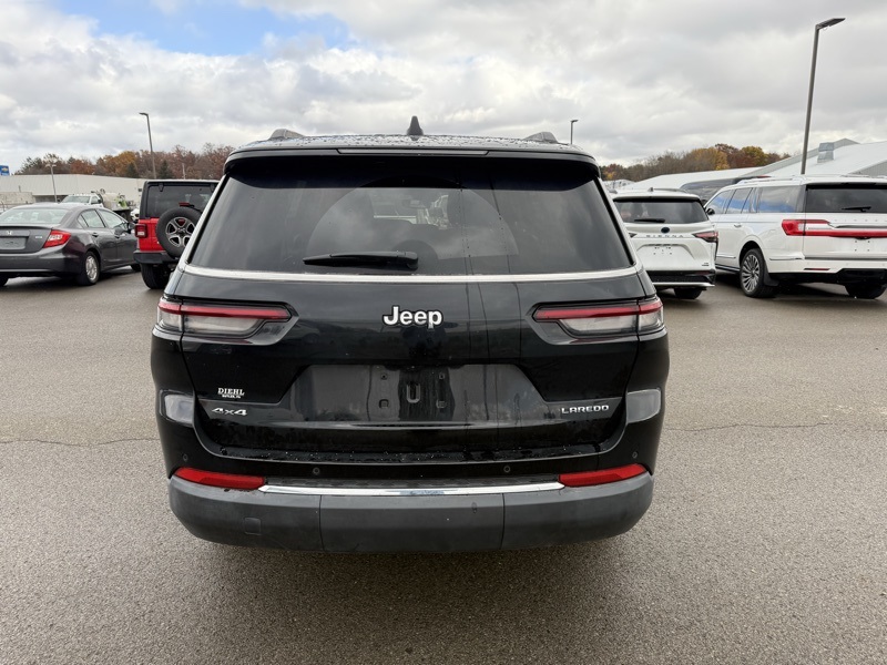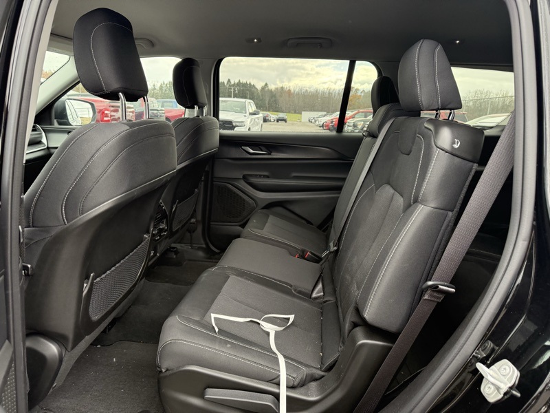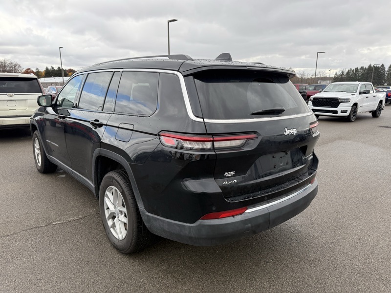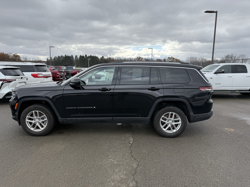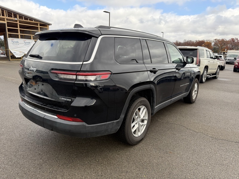 **ALL WHEEL DRIVE**, **BLUETOOTH HANDS FREE PHONE**, **BACK-UP CAMERA**, **THREE ROW SEATING**, **SECOND ROW BENCH**, **BLIND SPOT DETECTION**, **APPLE CARPLAY / ANDROID AUTO**, **8.4" TOUCHSCREEN RADIO**, **18" PAINTED ALUMINUM WHEEL**, **KEYLESS ENTRY**, **REAR PARKING SONAR**, **ADAPTIVE CRUISE CONTROL**, 2nd Row 60/40 Bench w/Manual Tip/Slide, 2nd Row Seat Center Armrest/Cupholders, 3 Rear Seat Head Restraints, 3.45 Rear Axle Ratio, 3rd row seats: split-bench, 4-Wheel Disc Brakes, 6 Speakers, ABS brakes, Air Conditioning, Alloy wheels, Anti-whiplash front head restraints, Automatic temperature control, Brake assist, Bumpers: body-color, Center Rear 3-Point Seat Belt, Cloth Seats, Compass, Delay-off headlights, Driver door bin, Driver vanity mirror, Dual front impact airbags, Dual front side impact airbags, Electronic Stability Control, Emergency communication system, Four wheel independent suspension, Front anti-roll bar, Front Bucket Seats, Front Center Armrest w/Storage, Front dual zone A/C, Front reading lights, Fully automatic headlights, Heated door mirrors, Illuminated entry, Knee airbag, Low tire pressure warning, Manual Fold Seatbacks, Normal Duty Suspension, Occupant sensing airbag, Outside temperature display, Overhead airbag, Overhead console, Panic alarm, ParkView Rear Back-Up Camera, Passenger door bin, Passenger vanity mirror, Power door mirrors, Power driver seat, Power steering, Power windows, Quick Order Package 23A Laredo, Radio data system, Radio: Uconnect 5 w/8.4" Display, Rear air conditioning, Rear anti-roll bar, Rear reading lights, Rear window defroster, Rear window wiper, Reclining 3rd row seat, Remote keyless entry, Security system, Speed control, Speed-Sensitive Wipers, Split folding rear seat, Spoiler, Steering wheel mounted audio controls, Tachometer, Telescoping steering wheel, Tilt steering wheel, Traction control, Trip computer, Variably intermittent wipers, Voltmeter, Wheels: 18" x 8.0" Fully Painted Aluminum. CARFAX One-Owner. Clean CARFAX. Diamond Black Crystal Pearlcoat 2024 Jeep Grand Cherokee L Laredo 4WD 8-Speed Automatic 3.6L V6 24V VVT