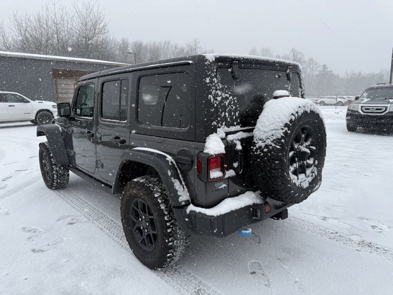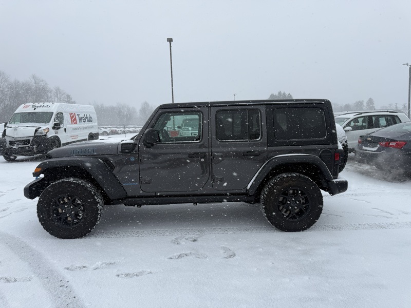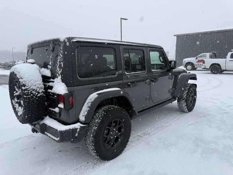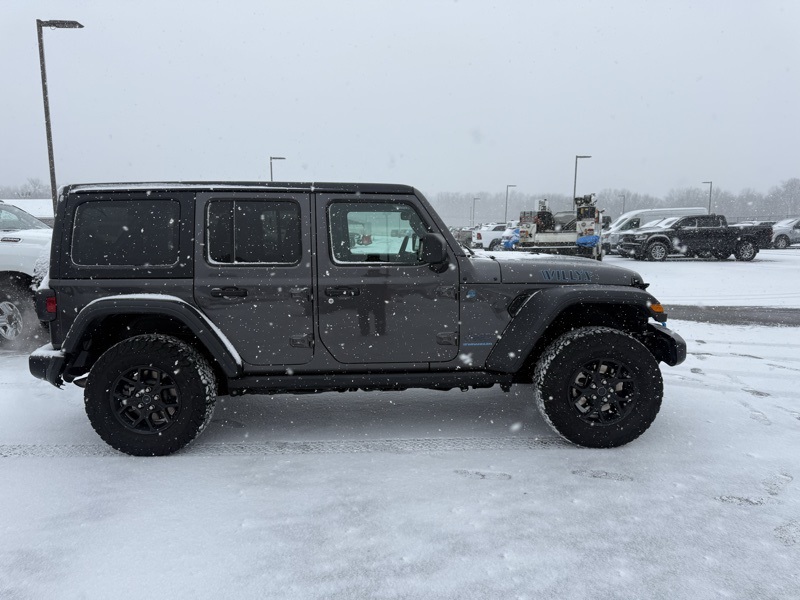 **BLUETOOTH HANDS FREE PHONE**, **LEATHER**, **BACK-UP CAMERA**, **APPLE CARPLAY / ANDROID AUTO**, **HEATED STEERING WHEEL**, **HEATED FRONT SEATS**, **FACTORY REMOTE START**, **CONVERTIBLE HARD TOP**, **FULL SPEED COLLISION WARNING**, **ALPINE PREMIUM SOUND**, 2.0L I4 DOHC, 2-Door Passive Entry, Front Door Locks, 4-Wheel Disc Brakes, 4.10 Rear Axle Ratio, 4xe 4-Wheel Drive Swing Gate Decal, 7 & 4 Pin Wiring Harness, 8 Speakers, 97 MPH Vehicle Max Speed Calibration, ABS brakes, Air Conditioning, Alloy wheels, Apple CarPlay/Android Auto, Automatic temperature control, Auxiliary Switches, Black 3-Piece Hard Top, Black Grille, Brake assist, Cloth Low-Back Bucket Seats, Compass, Convenience Group, Conventional Differential Front Axle, Delay-off headlights, Driver door bin, Driver vanity mirror, Dual front impact airbags, Dual front side impact airbags, E-Locker Rear Axle, Electronic Stability Control, Emergency/Assistance Call, Freedom Panel Storage Bag, Front anti-roll bar, Front Bucket Seats, Front Center Armrest w/Storage, Front dual zone A/C, Front fog lights, Front LED Fog Lamps, Front License Plate Bracket, Front reading lights, Fully automatic headlights, Heated door mirrors, Heated Front Seats, Heated Steering Wheel, Illuminated entry, Integrated roll-over protection, LED Premium Reflector Headlamps, Low tire pressure warning, Molded in Color Rubicon Highline Flare, MOPAR All-Weather Floor Mats, No Soft Top, Occupant sensing airbag, Off-Road Plus Mode, Outside temperature display, Overhead airbag, Panic alarm, ParkView Rear Back-Up Camera, Passenger door bin, Passenger vanity mirror, Power door mirrors, Power steering, Power windows, Quick Order Package 29W Willys, Radio data system, Radio: Uconnect 5 w/12.3" Display, Rear anti-roll bar, Rear reading lights, Rear Window Defroster, Rear Window Wiper/Washer, Remote keyless entry, Remote Start System, Security system, Speed control, Split folding rear seat, Sport Suspension, Steering wheel mounted audio controls, Tachometer, Telescoping steering wheel, Tilt steering wheel, Traction control, Trip computer, Universal Garage Door Opener, Variably intermittent wipers, Voltmeter, Wheels: 20" x 8" Machined/Painted Gray, Willy's Suspension, Willys, Willys 4xe Hood Decal. Recent Arrival! CARFAX One-Owner. Granite Crystal Metallic Clearcoat 2024 Jeep Wrangler Willys 4xe 4WD 8-Speed Automatic 2.0L I4 DOHC