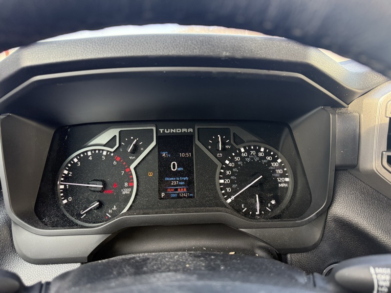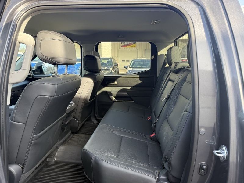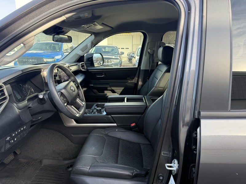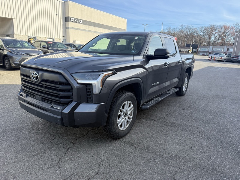**BLUETOOTH HANDS FREE PHONE**, **LEATHER**, **BACK-UP CAMERA**, **FACTORY LEATHER**, **HEATED FRONT SEATS**, **HEATED STEERING WHEEL**, **BLIND SPOT DETECTION**, **PRE COLLISION SYSTEM**, **ADAPTIVE CRUISE CONTROL**, **FRONT AND REAR PARKING SONAR**, **APPLE CARPLAY / ANDROID AUTO**, **SR5 PREMIUM**, 4WD, Black w/SofTex Seat Trim, 18" Alloy Wheels, 3.31 Axle Ratio, 32 Gallon Fuel Tank, 4-Way Adjustable Front Bucket Seats, 4-Wheel Disc Brakes, 8-Way Power-Adjustable Heated Front Seats, 9 Speakers, ABS brakes, Air Conditioning, Alloy wheels, AM/FM radio: SiriusXM, Apple CarPlay/Android Auto, Auto High-beam Headlights, Automatic temperature control, Blind Spot Monitor w/Lane Change Assist, Brake assist, Bumpers: body-color, Delay-off headlights, Driver door bin, Driver vanity mirror, Dual front impact airbags, Dual front side impact airbags, Electronic Stability Control, Emergency communication system: Safety Connect (10-year trial), Exterior Parking Camera Rear, Fabric Seat Trim (FB), Front anti-roll bar, Front Bucket Seats, Front Center Armrest, Front fog lights, Front reading lights, Front wheel independent suspension, Fully automatic headlights, Heated door mirrors, Illuminated entry, Knee airbag, Low tire pressure warning, Occupant sensing airbag, Outside temperature display, Overhead airbag, Overhead console, Panic alarm, Parking Support Alert/Brake, Passenger door bin, Passenger vanity mirror, Power door mirrors, Power steering, Power windows, Radio data system, Radio: Audio Multimedia System, Rear reading lights, Rear step bumper, Rear window defroster, Remote keyless entry, Safety Connect, Security system, SofTex Seat Trim, Speed control, Speed-sensing steering, Split folding rear seat, SR5 Convenience Package, SR5 Premium Package, Steering wheel mounted audio controls, Tachometer, Telescoping steering wheel, Tilt steering wheel, Traction control, Trip computer, Variably intermittent wipers, Voltmeter. CARFAX One-Owner. Magnetic Gray Metallic 2024 Toyota Tundra SR5 4WD 10-Speed Automatic 3.4L V6