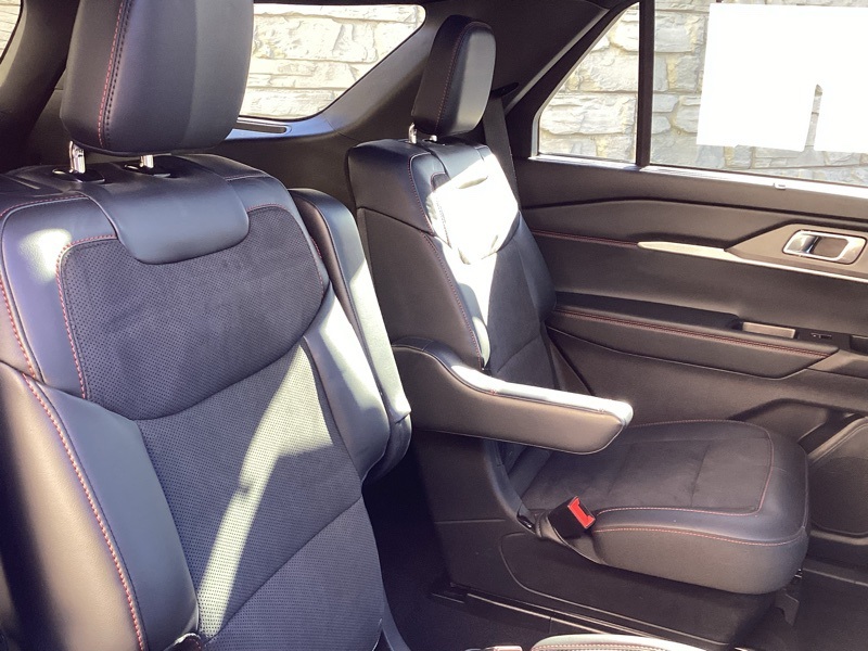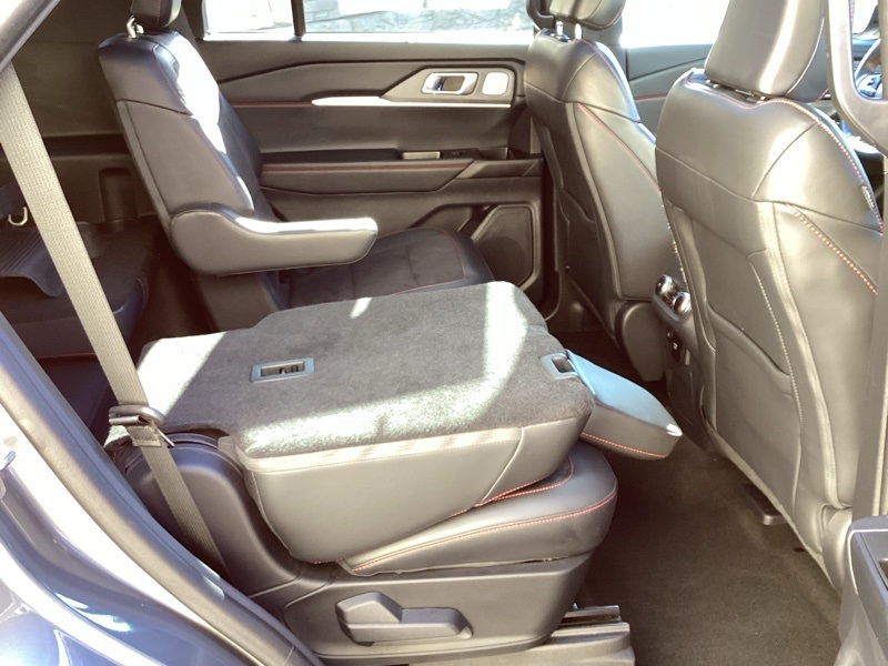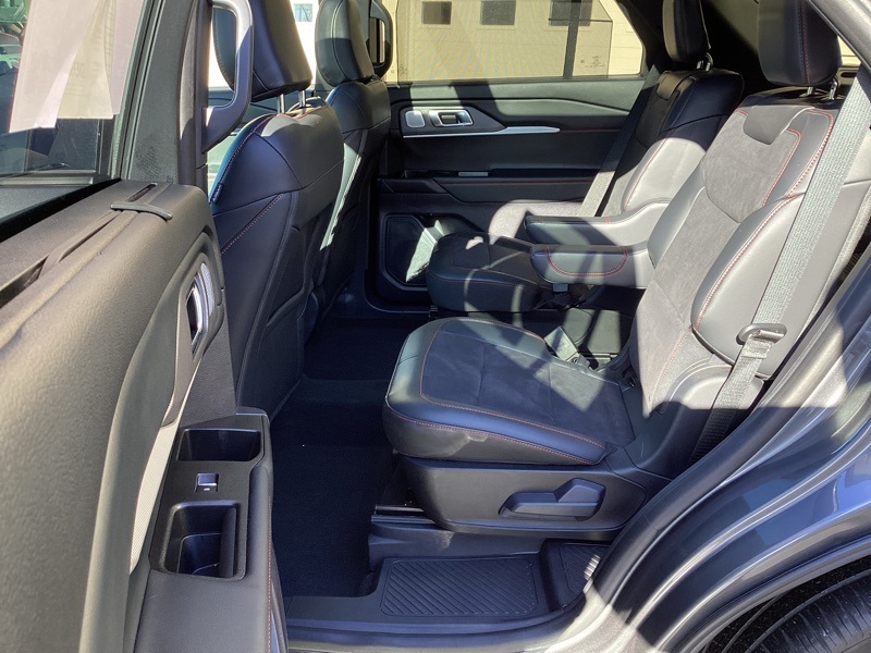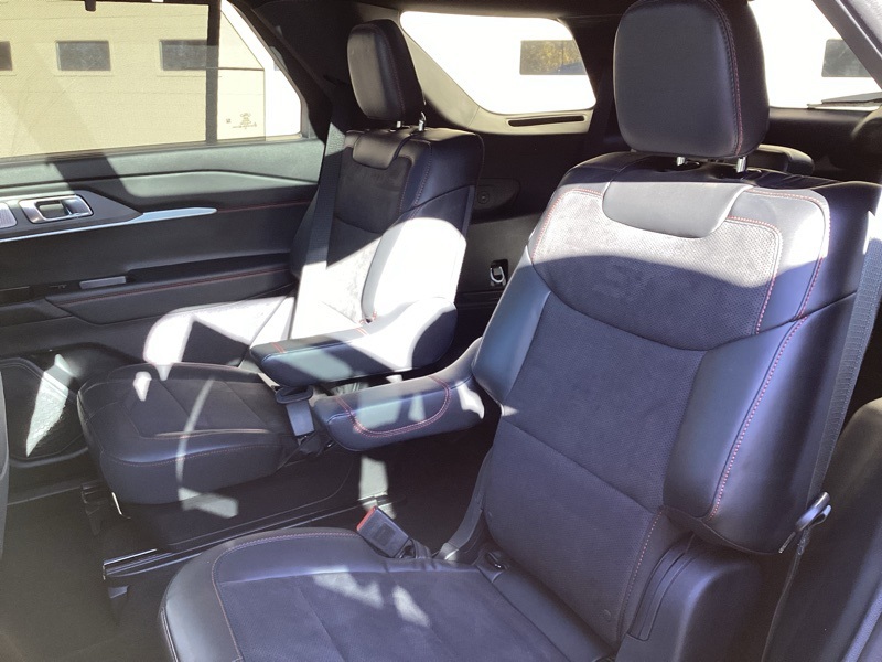 **ONE-OWNER**, **HEATED SEATS**, **HEATED STEERING WHEEL**, **COOLED SEATS**, **BLIND SPOT MONITOR**, **FRONT COLLISSION ALERT**, **REAR PARK ASSIST**, **FRONT PARK ASSIST**, **BACKUP CAMERA**, **SURROUND VIEW CAMERA**, **POWER DRIVERS SEAT**, **POWER PASSENGER SEAT**, **PREMIUM SOUND SYSTEM**, **LEATHER SEATS**, **NAVIGATION**, **APPLE CAR PLAY**, **ANDROID AUTO**, 4WD, 10 Speakers, 3.58 Non-Limited Slip Rear Axle, 3rd row seats: bench, 4-Wheel Disc Brakes, ABS brakes, Air Conditioning, Alloy wheels, AM/FM radio: SiriusXM with 360L, Apple CarPlay/Android Auto, Auto High-beam Headlights, Auto-dimming door mirrors, Auto-dimming Rear-View mirror, Automatic temperature control, Brake assist, Bumpers: body-color, Compass, Delay-off headlights, Driver door bin, Driver vanity mirror, Dual front impact airbags, Dual front side impact airbags, Electronic Stability Control, Emergency communication system: 911 Assist, Equipment Group 400A Standard Package, Exterior Parking Camera Rear, Four wheel independent suspension, Front & 2nd Rows Floor Liners w/Carpet Floor Mats, Front anti-roll bar, Front Bucket Seats, Front Center Armrest, Front dual zone A/C, Front fog lights, Front reading lights, Fully automatic headlights, Garage door transmitter, Heated door mirrors, Heated front seats, Heated rear seats, Heated steering wheel, Heated/Ventilated Miko Sport Captain's Chairs, Illuminated entry, Knee airbag, Leather steering wheel, Low tire pressure warning, Memory seat, Navigation System, Occupant sensing airbag, Outside temperature display, Overhead airbag, Overhead console, Panic alarm, Passenger door bin, Passenger vanity mirror, Power door mirrors, Power driver seat, Power Liftgate, Power passenger seat, Power steering, Power windows, Radio: B&O Sound System by Bang & Olufsen, Rain sensing wipers, Rear air conditioning, Rear anti-roll bar, Rear reading lights, Rear window defroster, Rear window wiper, Remote keyless entry, Security system, Speed control, Speed-sensing steering, Speed-Sensitive Wipers, Split folding rear seat, Spoiler, Sport steering wheel, Steering wheel mounted audio controls, Tachometer, Telescoping steering wheel, Tilt steering wheel, Traction control, Trip computer, Turn signal indicator mirrors, Variably intermittent wipers, Ventilated front seats, Wheels: 21" Magnetite-Painted Aluminum. Gray Metallic 2025 Ford Explorer ST 4WD 10-Speed Automatic 3.0L EcoBoost V6