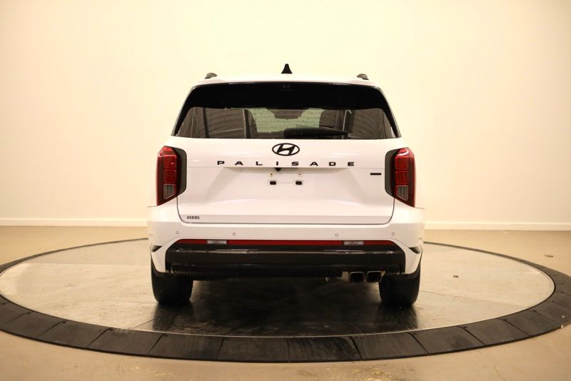 **CLEAN CARFAX**, **PANORAMIC MOONROOF**, **FORWARD COLLSION AVOIDANCE**, **LANE KEEP ASSIST**, **BLIND SPOT DETECTION**, **ADAPTIVE CRIUSE CONTROL**, **FRONT AND REAR PARKING SONAR**, **20" DARK ALLOY WHEELS**, **FACTORY REMOTE START**, **POWER LIFTGATE**, **THREE ROW SEATING**, **SECOND ROW BUCKETS**, **HEATED REAR SEATS**, **HEATED AND COOLED FRONT SEATS**, **12.3" TOUCHSCREEN RADIO**, **HARMON KARDON PREMIUM SOUND**, **APPLE CARPLAY / ANDROID AUTO**, **BIRDSEYE VIEW**, **HEADS UP DISPLAY**, 4-Wheel Disc Brakes, ABS brakes, Brake assist, Dual front impact airbags, Dual front side impact airbags, Electronic Stability Control, Emergency communication system, Front anti-roll bar, Knee airbag, Low tire pressure warning, Occupant sensing airbag, Option Group 01, Overhead airbag, Rear anti-roll bar, Rear side impact airbag. Hyper White 2025 Hyundai Palisade Calligraphy Night Edition AWD 8-Speed Automatic with SHIFTRONIC V6