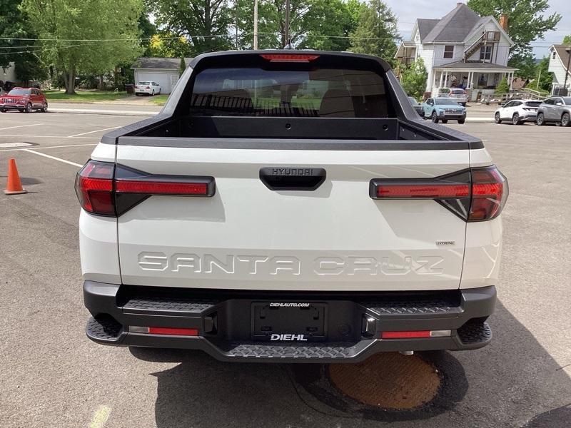Certified. Atlas White 2025 Hyundai Santa Cruz SE AWD 8-Speed Automatic with SHIFTRONIC 2.5L I4