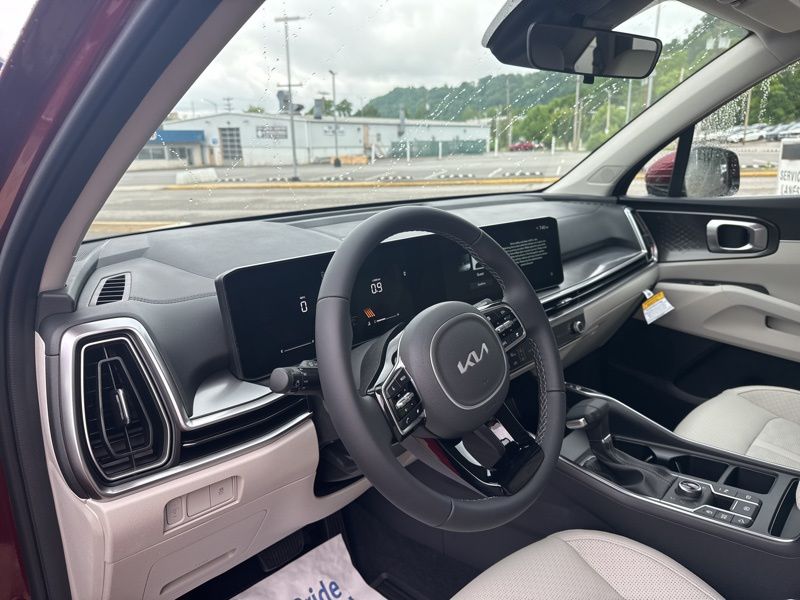 **BACK UP SENSOR**, *KEYLESS START*, **3RD ROW SEATING**, *ALL WHEEL DRIVE*, **BACK UP CAMERA**, **ANDROID AUTO**, **APPLE CAR PLAY**, **HEATED SEATS**, **LANE KEEP ASSIST**, **LEATHER**, **NAVIGATION**, **POWER DRIVERS SEAT**, AWD. Certified. Dawning Red 2025 Kia Sorento S AWD 8-Speed Automatic 2.5L I4 DGI DOHC 16V LEV3-SULEV30 191hp