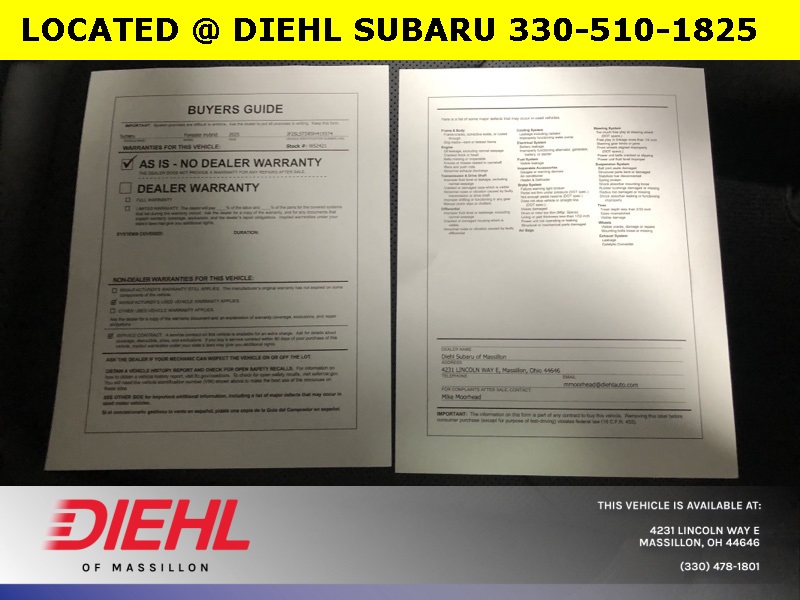 **Clean Carfax**, **One Owner**, **Subaru Certified**, **All Wheel Drive**, **Lane Keep Assist**, 2.5L 4-Cylinder DOHC 16V, Navigation system: TomTom Navigation w/what3words, Standard Model. Certified. 2025 Subaru Forester Hybrid Touring CARFAX One-Owner. Clean CARFAX.