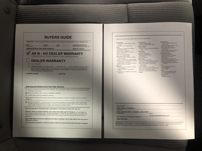 **Clean Carfax**, **One Owner**, **Subaru Certified**, **All Wheel Drive**, **Backup Camera**, **Blind Spot Detection**, Lane Change Assist, Auto-Dimming Mirror w/Compass & HomeLink, Blind Spot Detection w/Rear Cross-Traffic Alert, BSD w/RCTA & Keyless Access & LED Fog Lights, Cargo Tray, Keyless Access w/Push Button Start, LED Fog Lights, Popular Package #1A, Rear Bumper Applique. Certified. 2025 Subaru Legacy Premium CARFAX One-Owner. Clean CARFAX.